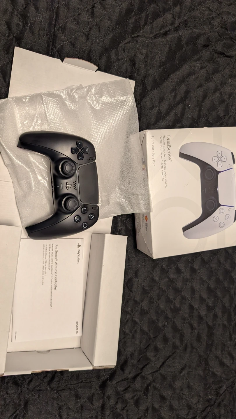 Selling a black Sony PlayStation DualSense wireless controller for PS5. Includes original packaging and manuals. It's a fantastic controller for gaming!