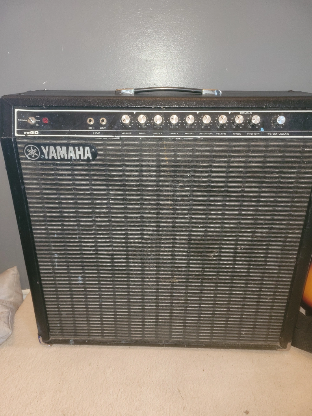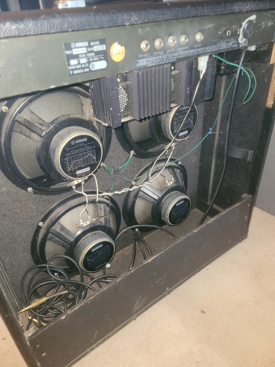 Yamaha guitar amplifier. Four speakers. Numerous knobs and controls. Works great.Its very loud.Has a few dings but hey its almost 50 years old.price now dropped by $100!!!