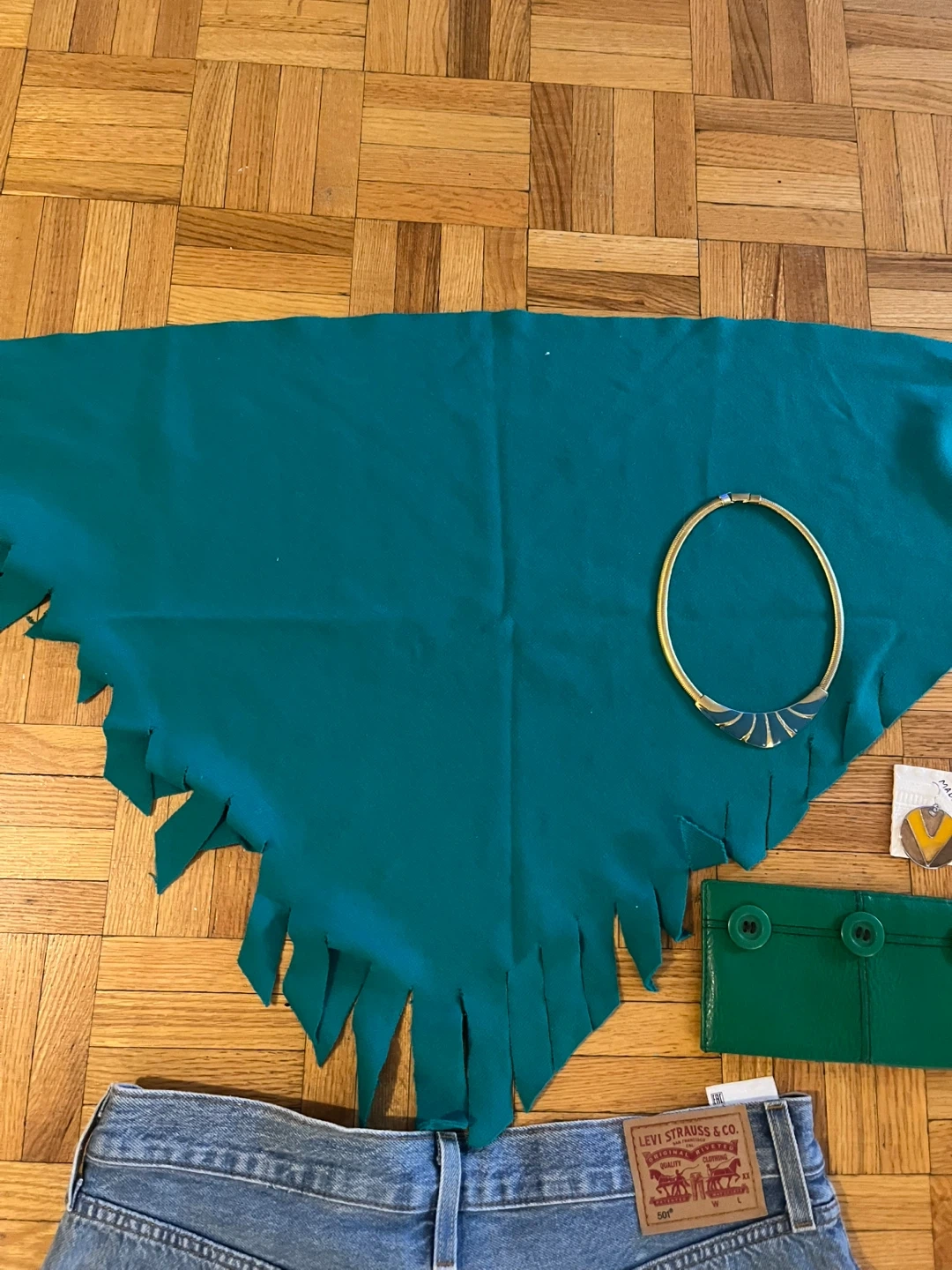 Freestyle outfit, five piece set perfect for summer. The Levi’s are 501 size 10. The halter top can be worn as a scarf or a tide as a halter with a fringe .