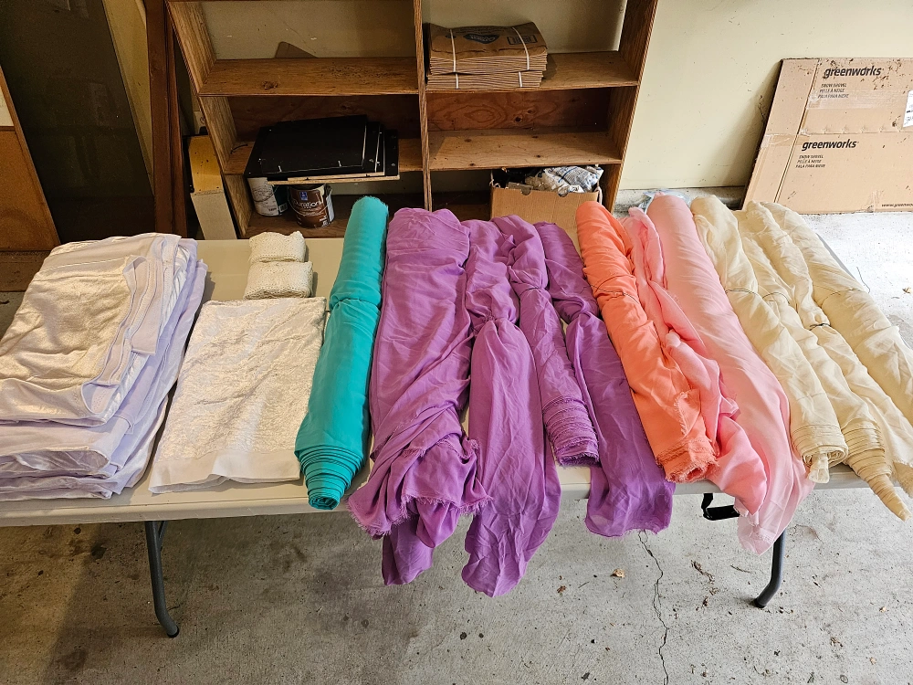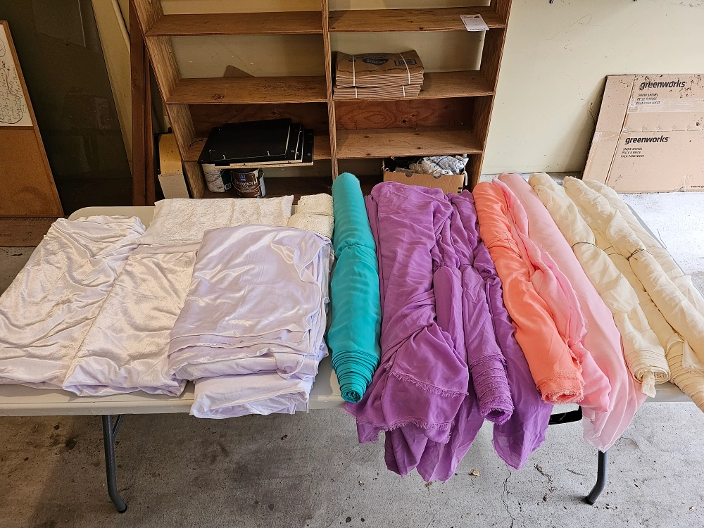 A bunch of fabrics for sale. Used them for wedding decorations, still in good condition. They're all 5ft wide and at least 10ft long, some are longer.