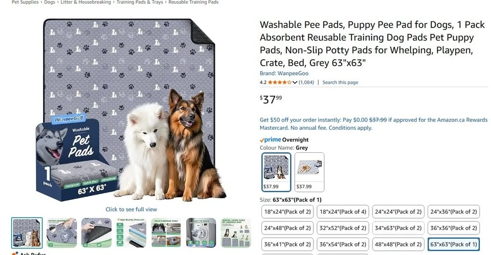 Brand new, unopened Wanpeego washable pee pads in paw print grey. Absorbent reusable training pads with non-slip backing. Great for puppies, dogs, crates, playpens, furniture, and as an extra layer of protection on beds.