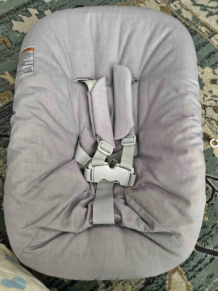 I'm selling a Stokke Steps Bouncer, a cozy and supportive seat for your little one. It's designed to be used on the floor or mounted on the Stokke Steps Chair and comes complete with a five-point harness and soft padding. This bouncer is in used-good condition and ready for a new home!