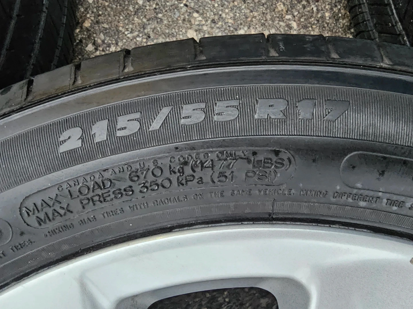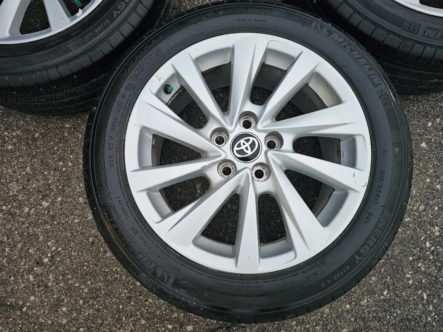 Selling set of 4 original 17" Toyota camry rims with Michellin all season tires on them 215/55 R17. Rims and tires are in good shape, no damage, no bend, no cracks. Lots of thread left on tires, TPMS installed