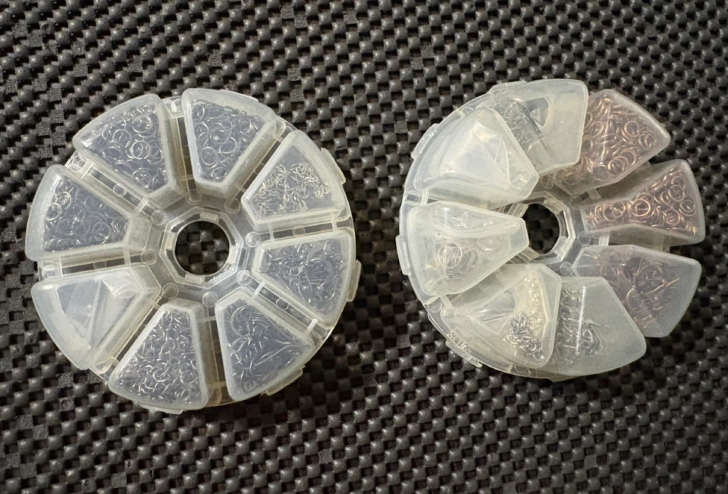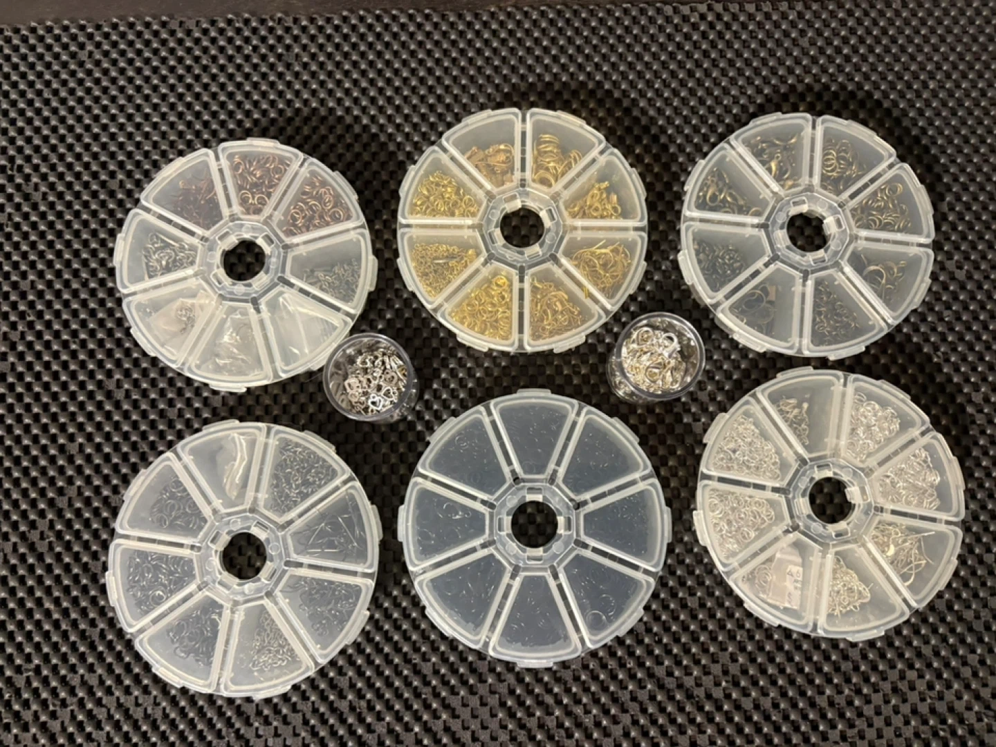 Set of organizer wheels filled with assorted jewelry findings $130