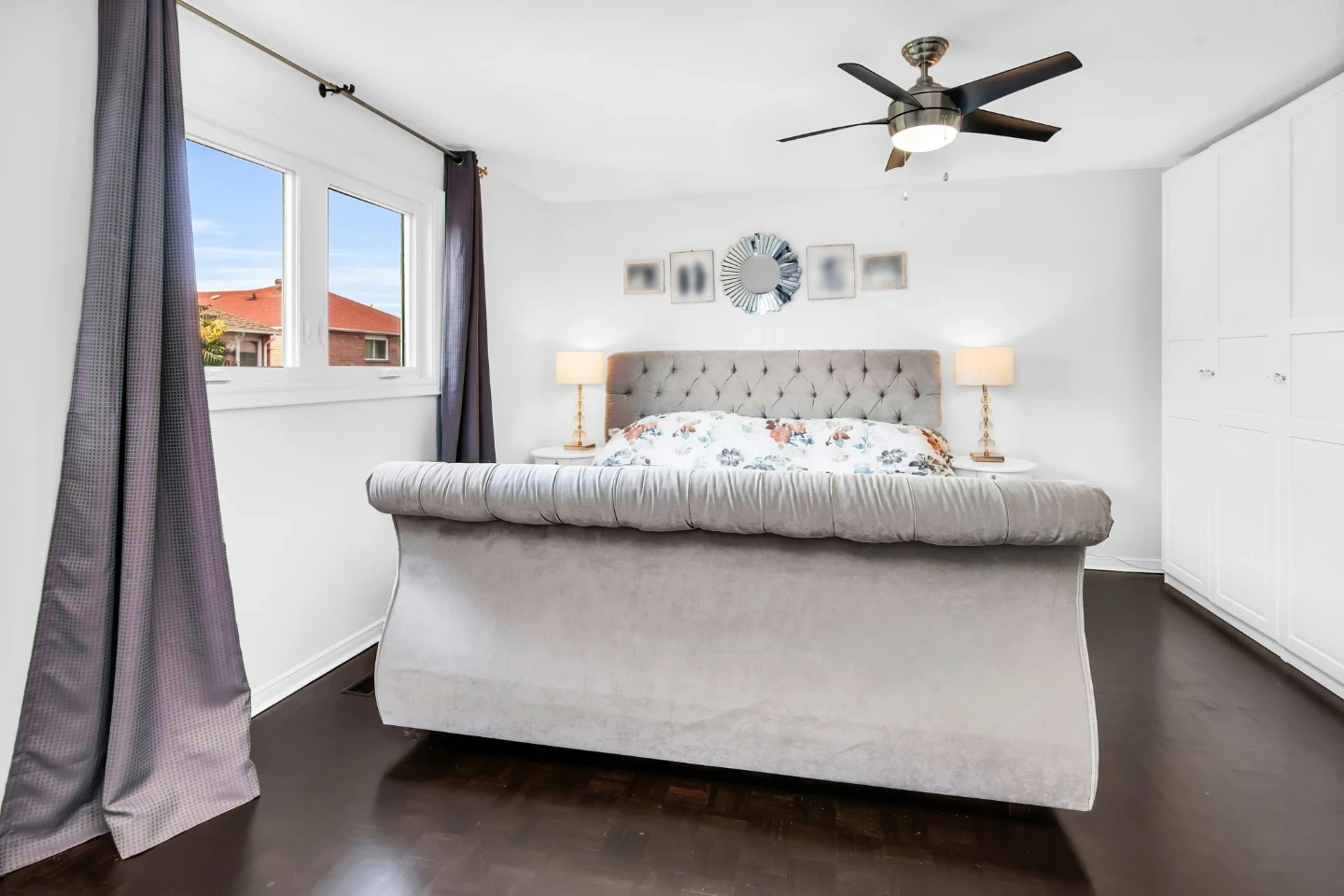 Tufted Grey Velvet Upholstered King Bed Frame