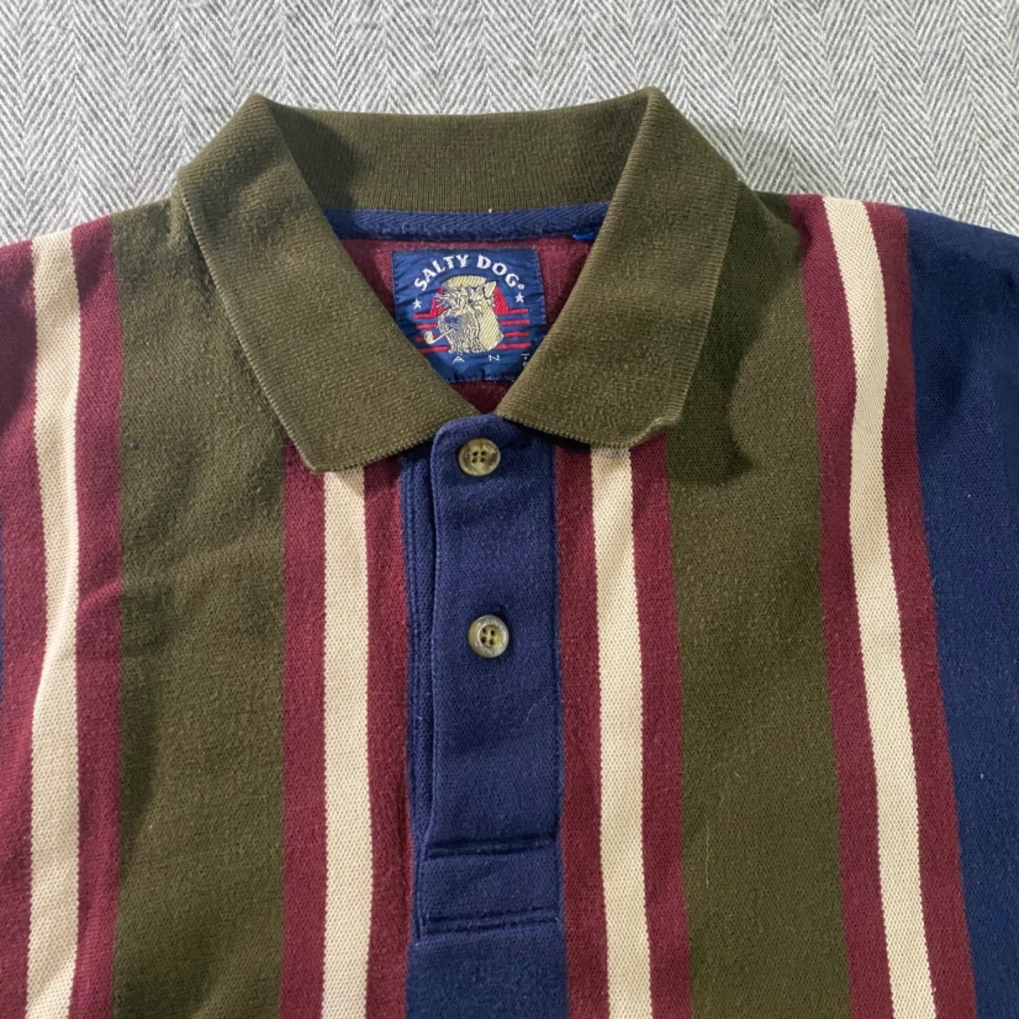 Vintage Salty Dog Long Sleeve Striped Polo Shirt L
