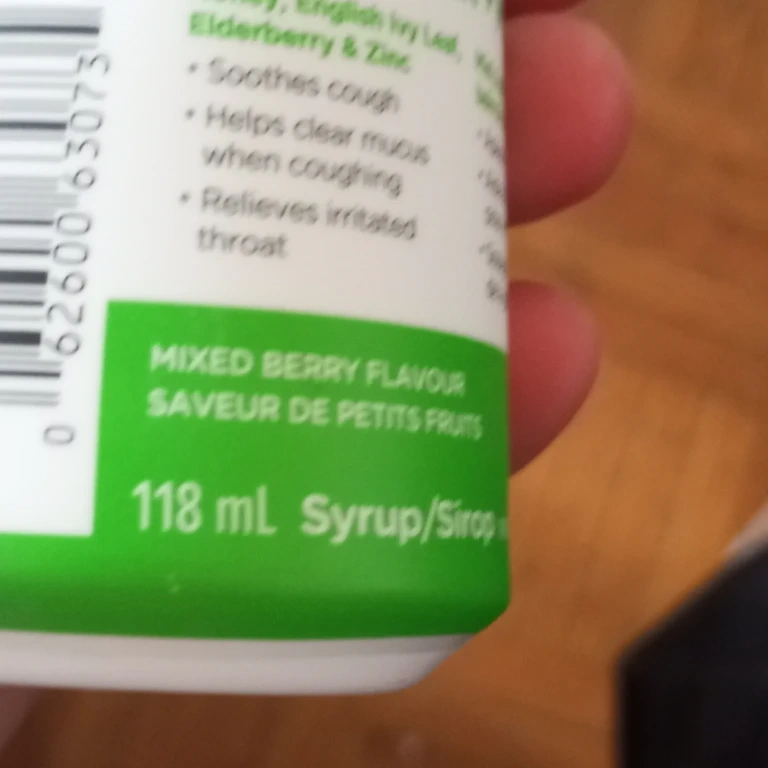 This Zarbee's Children's Cough + Mucus Syrup is a mixed berry flavour.