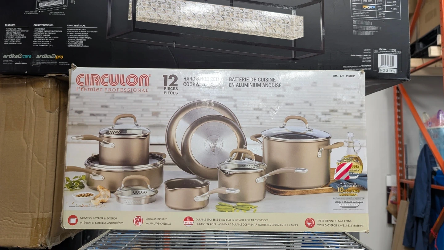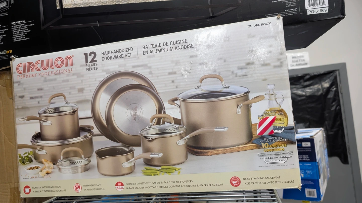 This Circulon Premier Professional set includes 12 pieces of hard-anodized cookware. It's durable stainless steel construction is suitable for all stovetops. Dishwasher safe for easy cleanup!