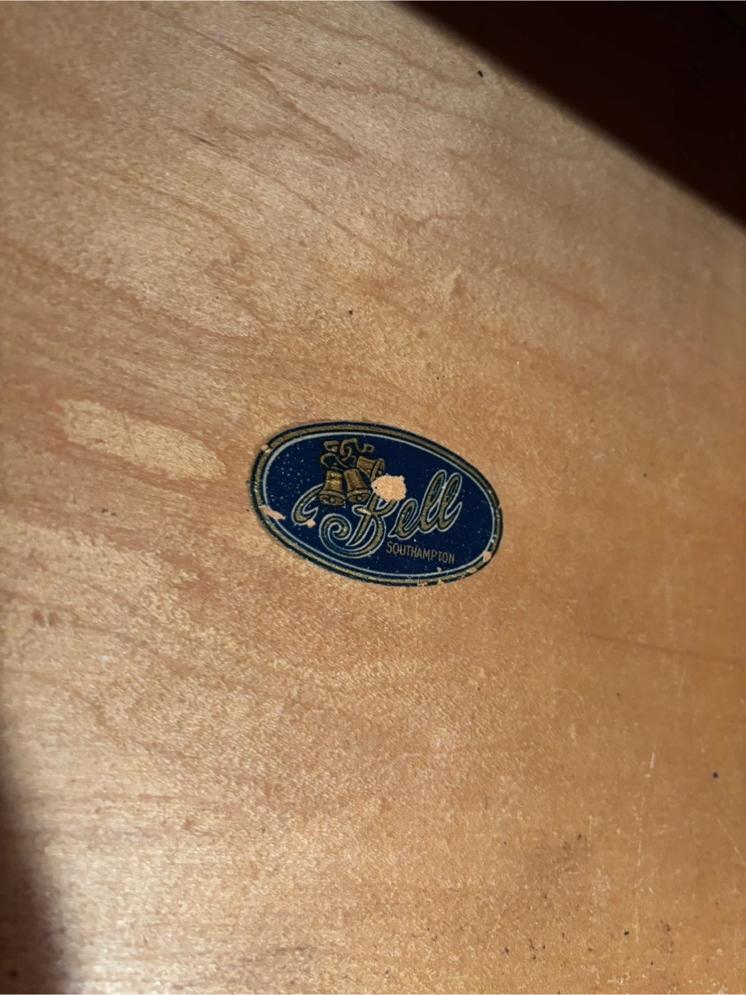 This is a vintage dresser by Bell Southampton. It's made of dark wood with ornate brass handles. It has four drawers for storage. This dresser would be useful for storing clothes or other household items.rich looking piece for any room.
