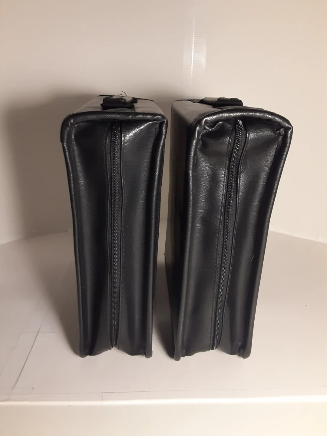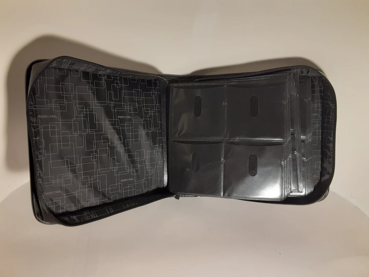 2 Memorex black and brown faux leather CD cases, each have 32 pages/256 slots. Both are in excellent condition, the only damage I could find is photographed and only in one of the cases. Perfect to organize your collection in style. SOLD TOGETHER.