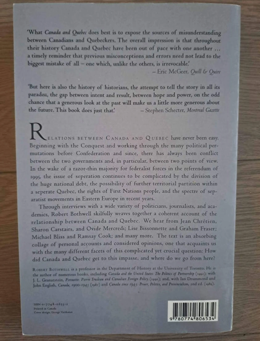Revised edition of Robert Bothwell's insightful look at the history of Canada and Quebec. Explores the complex relationship between the two. Provides context to the ongoing political and cultural discussions.