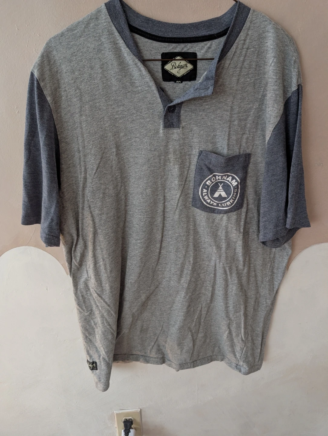 Bohnam Men's Grey Henley T-Shirt Size L