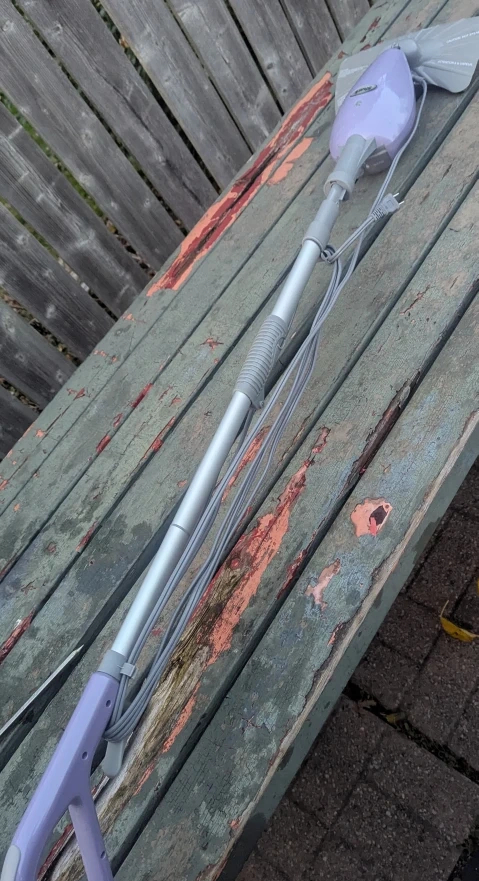 Selling a Shark steam mop in a lovely purple colour! It's in great condition and ready to help you keep your floors sparkling clean. It includes the mop head attachment and power cord, so you're all set to go!