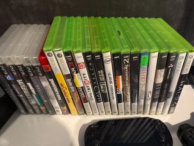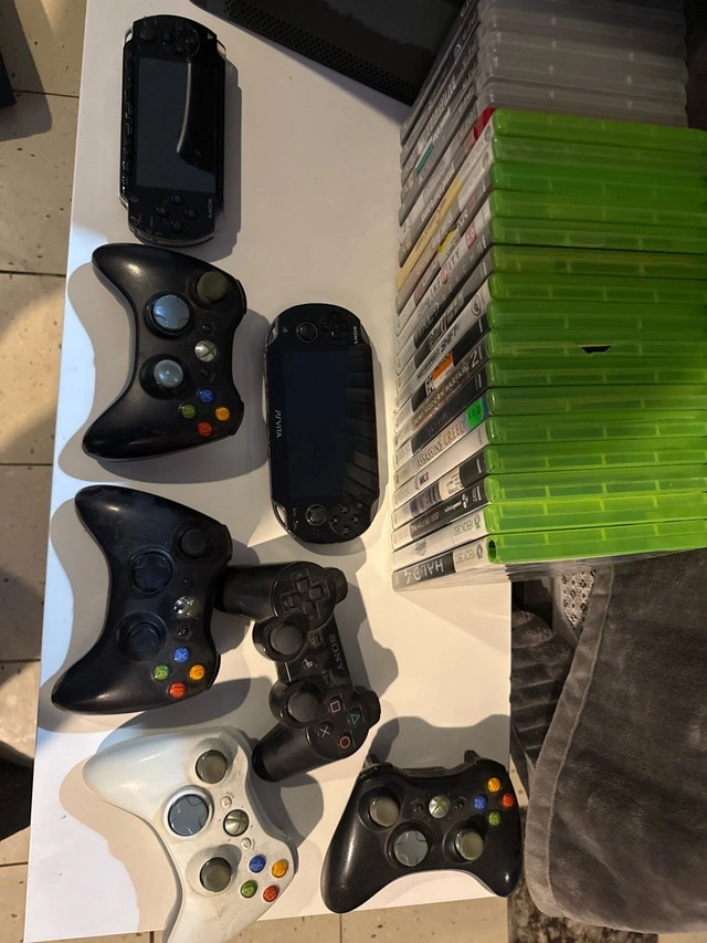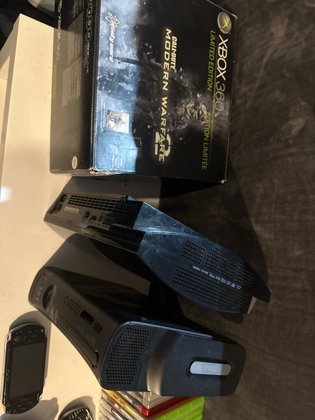 * **Xbox 360 (Modern Warfare 2 Edition):** Includes original box, cords, and packaging. Asking $500. Also includes 2 x 250GB hard drives and 4 controllers (3 black, 1 white). Games: Skylanders Swap Force (with hardware and starters), Halo 4, The Walking Dead Telltale, Where the Wild Things Are, NHL 13, Assassin's Creed, Skyrim, Modern Warfare 2, Far Cry 3, Need for Speed Shift, Fallout 3, Halo Reach, Disney Infinity, Gears of War 3, The Simpsons Game, Guitar Hero Aerosmith (sealed).