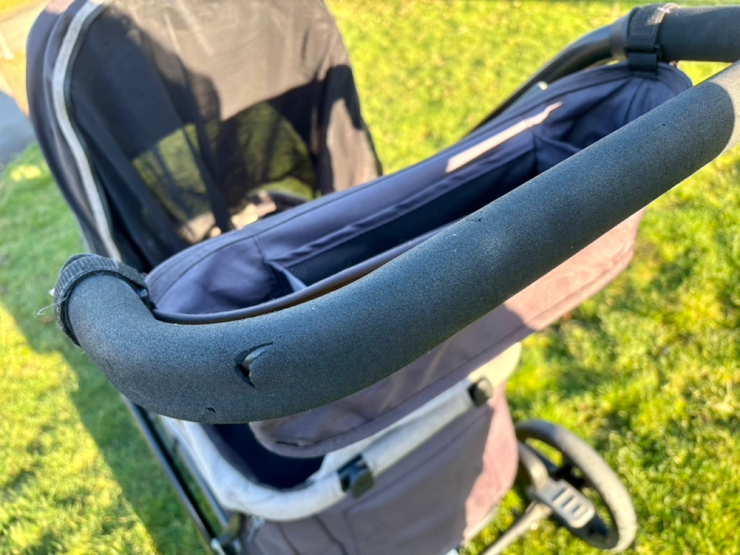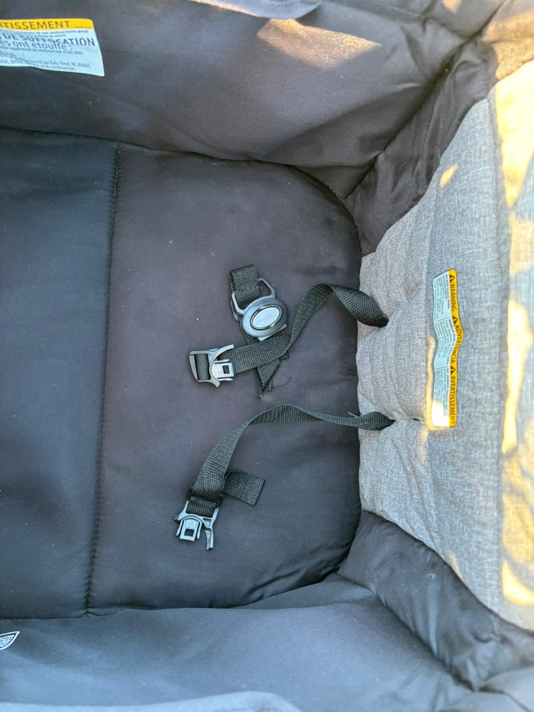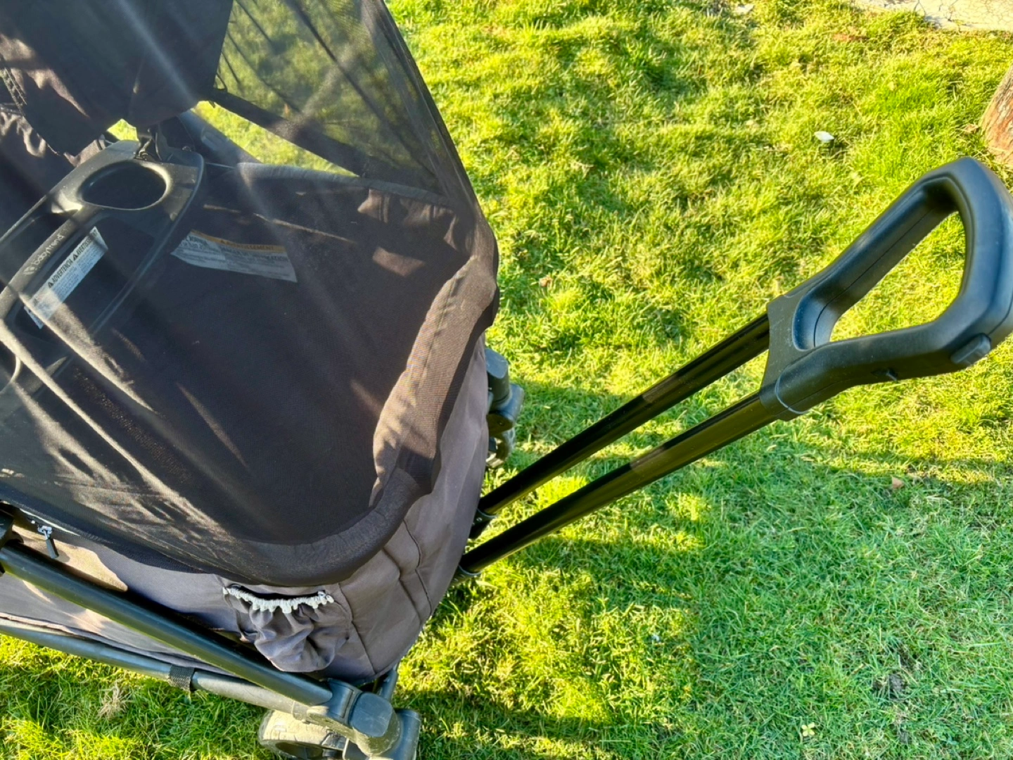 Used BabyTrend Expedition 2-in-1 stroller wagon. Features a removable shade, cup holders, and storage pockets. Great for outdoor adventures. Some scratches on the side but otherwise in great condition.