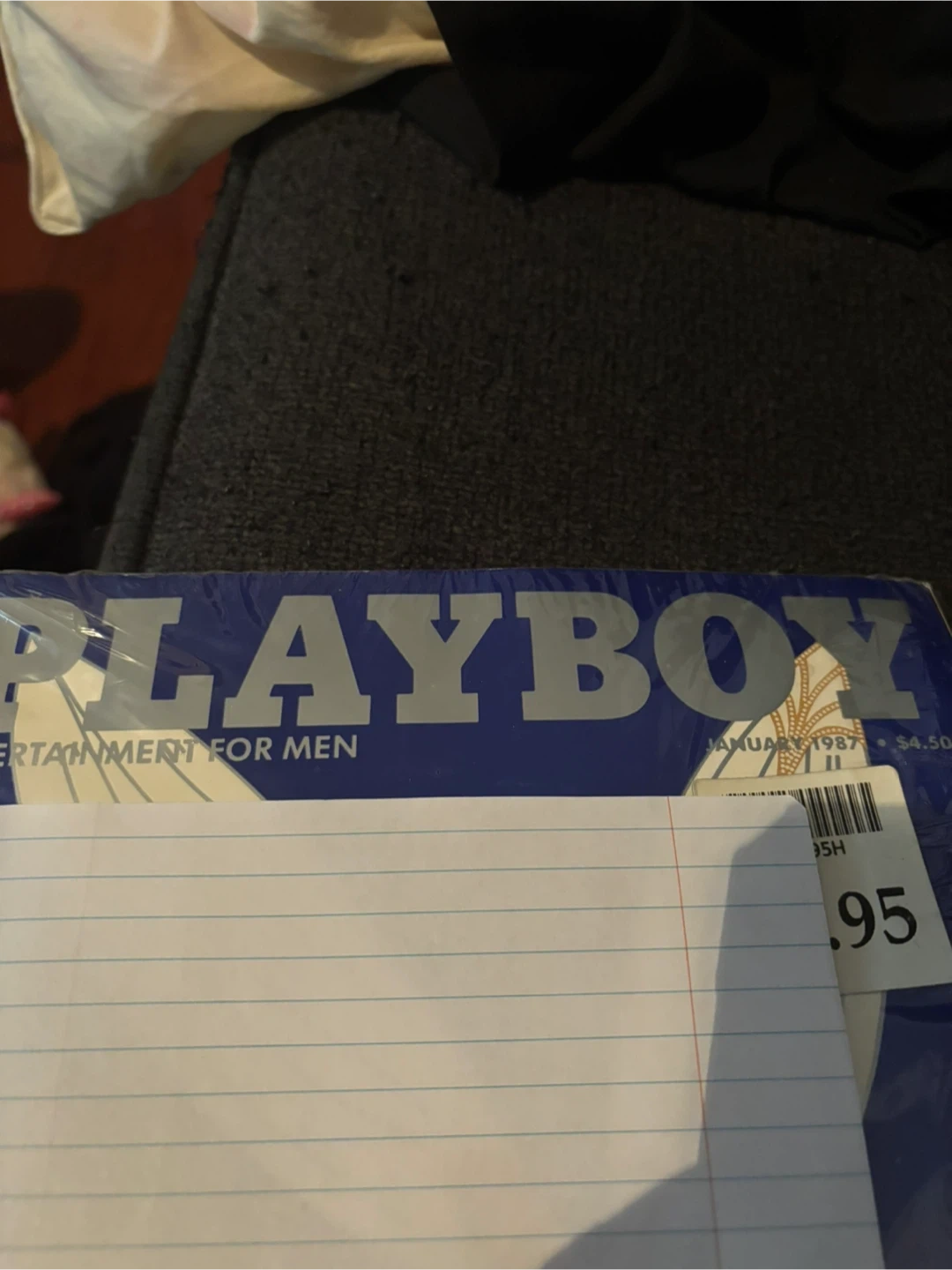 This is the January 1987 Holiday Anniversary issue of Playboy Magazine. It is in its original plastic wrapping. The original price was $4.50.