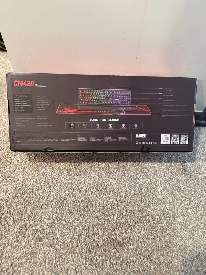 Brand new Marvo CM420 3-in-1 advanced gaming kit, includes a keyboard, mouse, and mousepad. The keyboard features customizable RGB lighting, and the mouse is designed for precision and comfort. Perfect for enhancing your gaming setup. Never used, still in box! Text me at 403_926_6669.