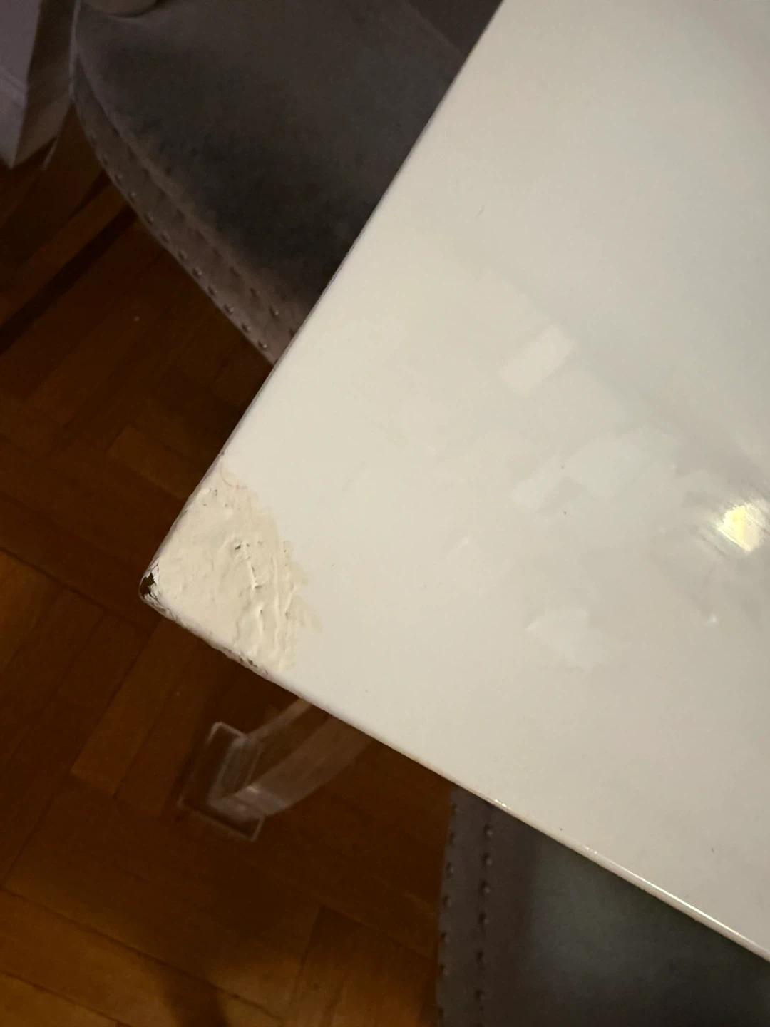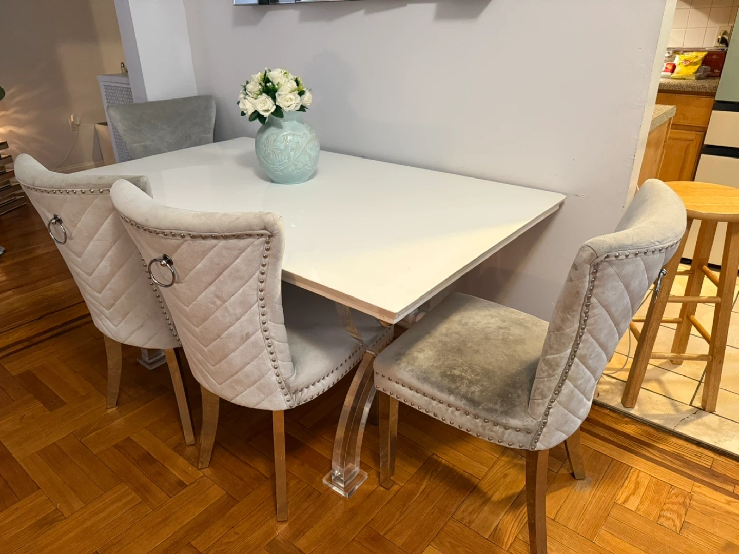 • Elegant white table with clear acrylic-style legs