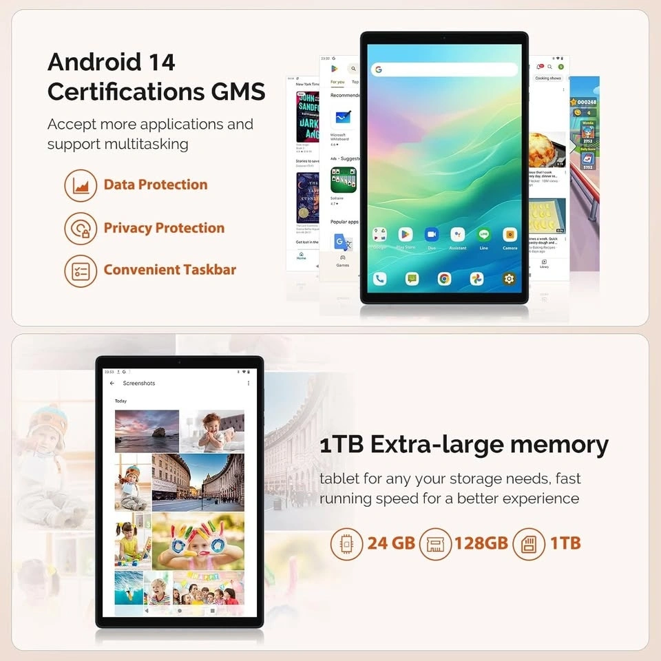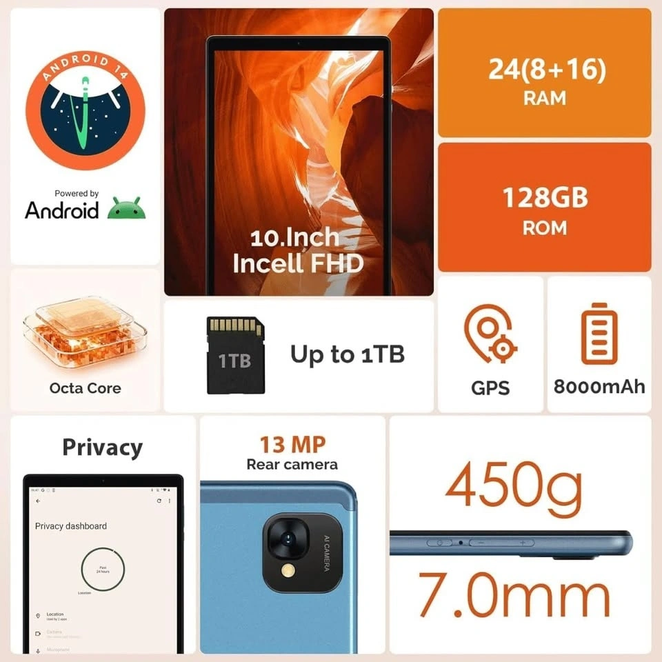 POWMUS Android Tablet 10.1 Inch 24 GB RAM 128GB Expand