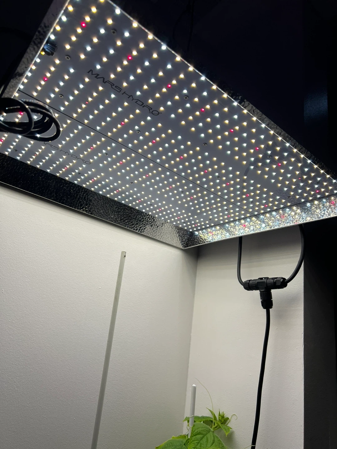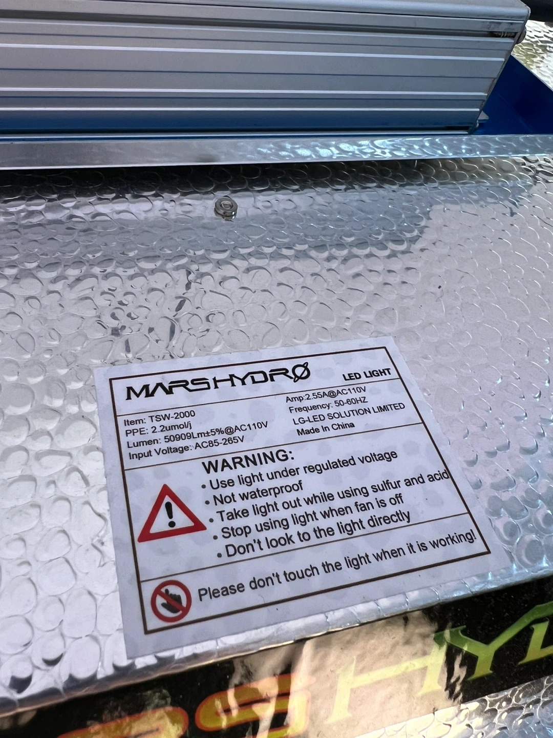 This is a Mars Hydro TSW 2000 LED grow light. It's designed for indoor plant cultivation, providing full spectrum light. Includes original box and hanging kit.