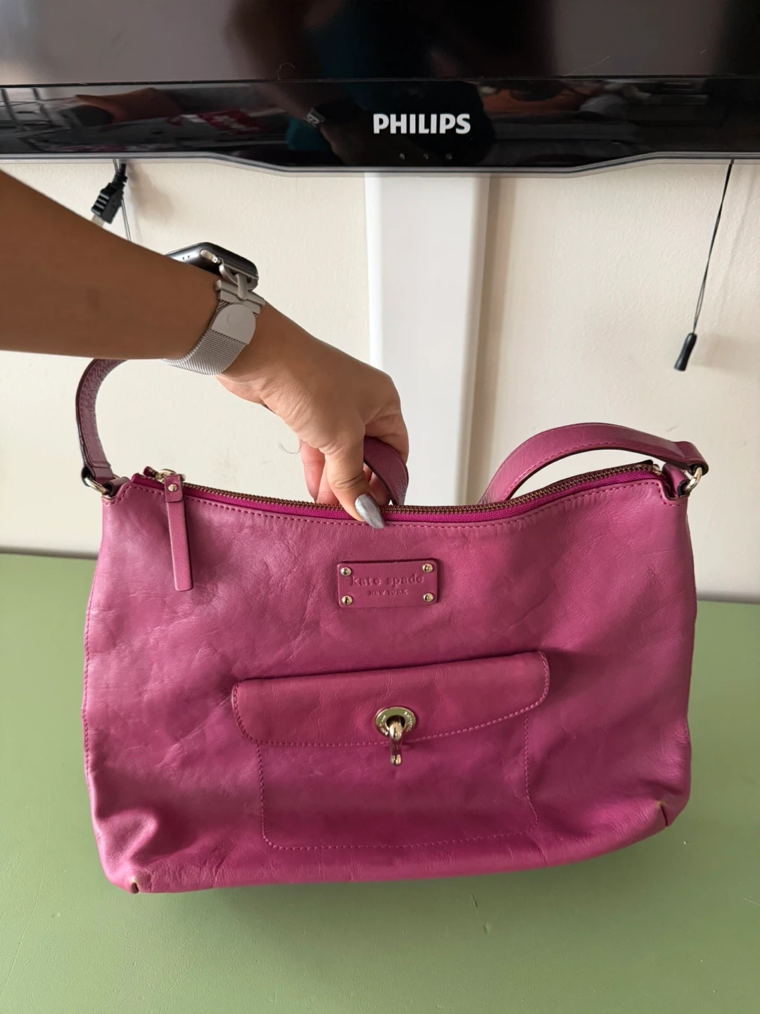 Selling two Kate Spade shoulder bags in a lovely pink leather and another in emerald green. Both in great condition and has a unique look. Offer is for one but can sell them together if wanted!