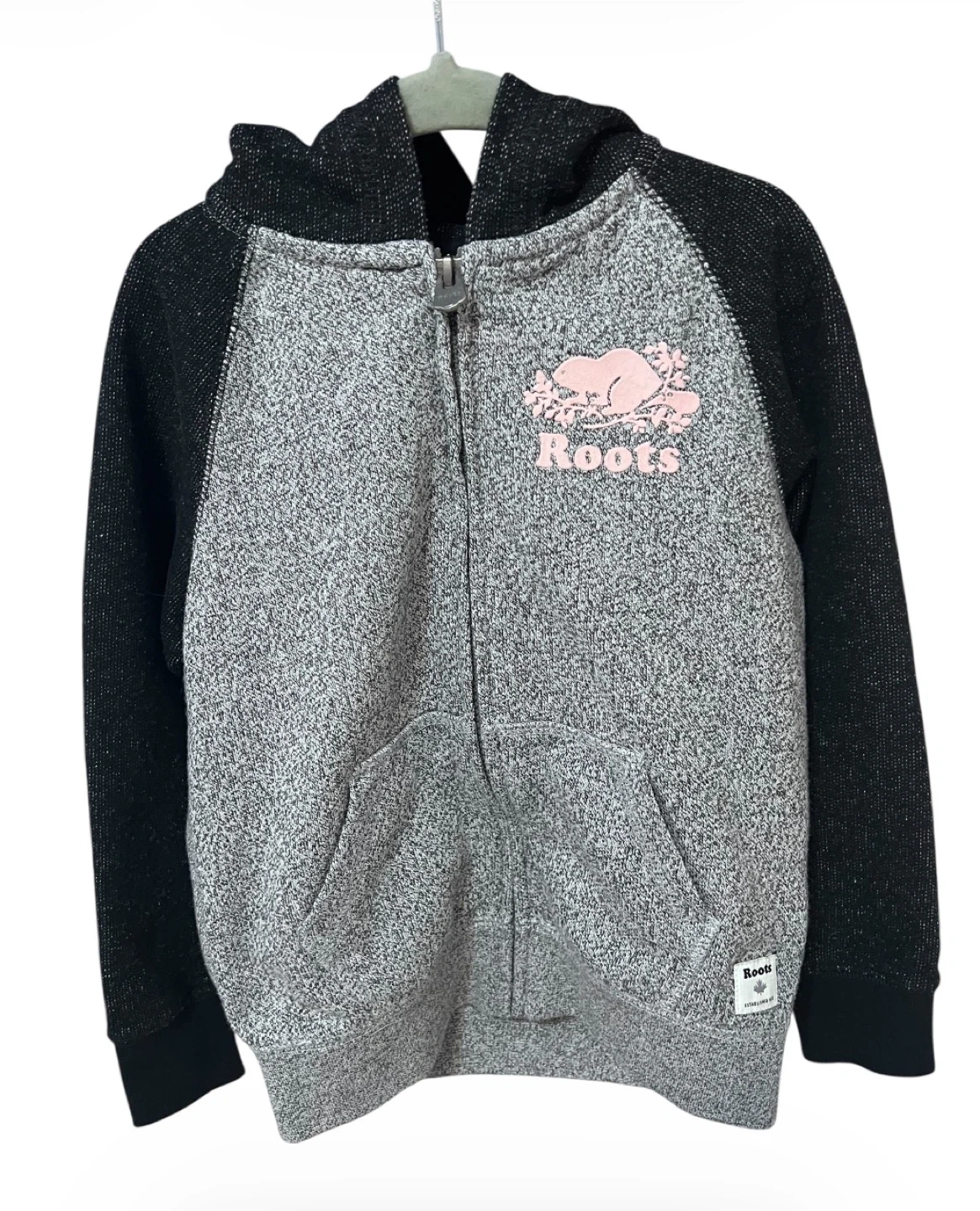 Like new Roots Kids Organic Original Full Zip Hoodie in classic salt & pepper grey.