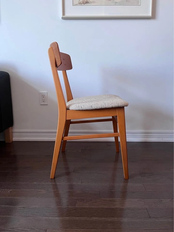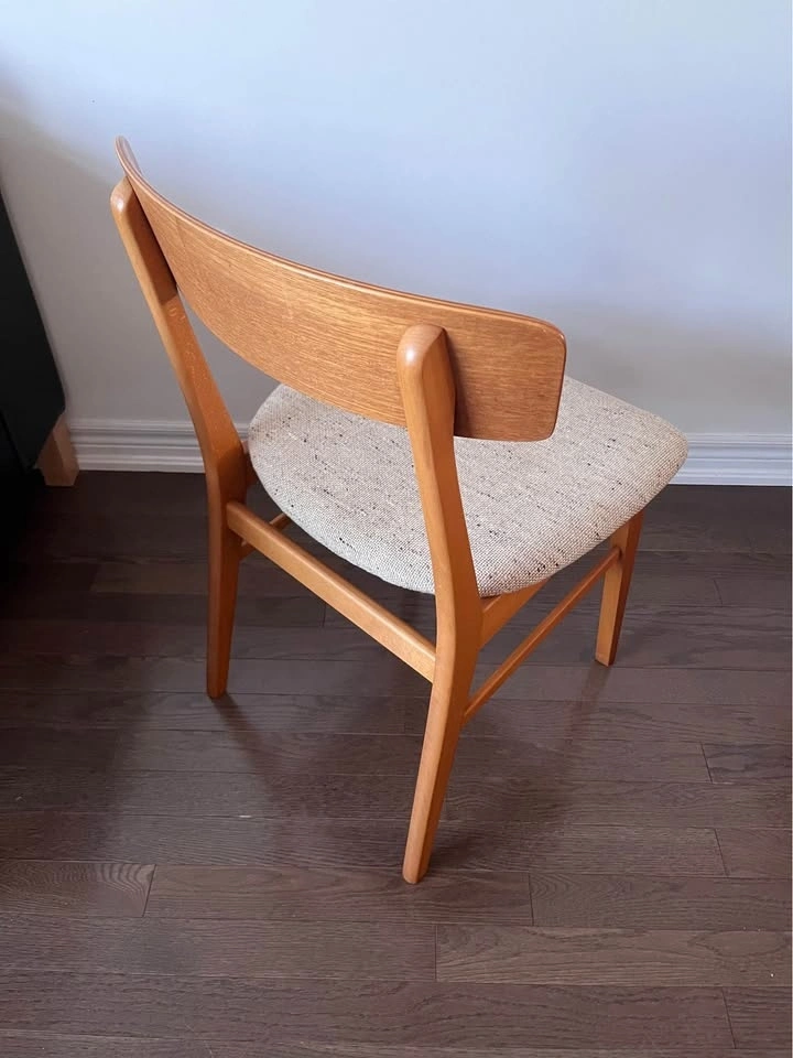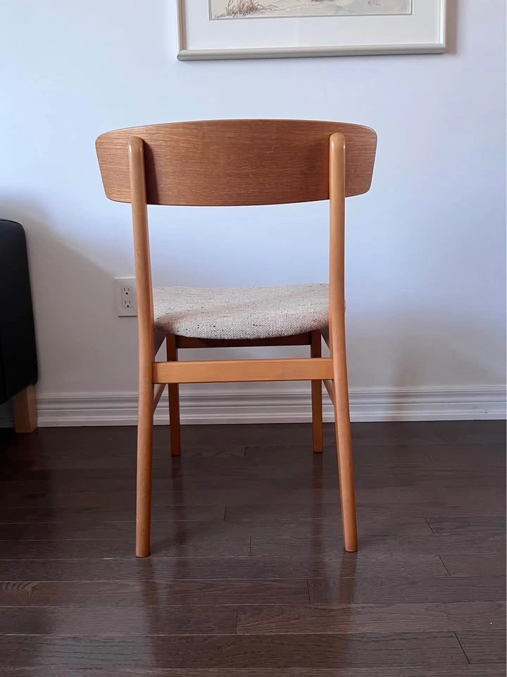 Vintage Danish Farstrup dining chairs, model 221. Wood is in excellent condition. No loose joints, all chairs are sturdy. Selling as a set of 4. Seat: 18"(H) x 18.5"(W) x 15"(D). Chair: 31"(H). I can offer free delivery in the Hamilton area if the distance is reasonable.