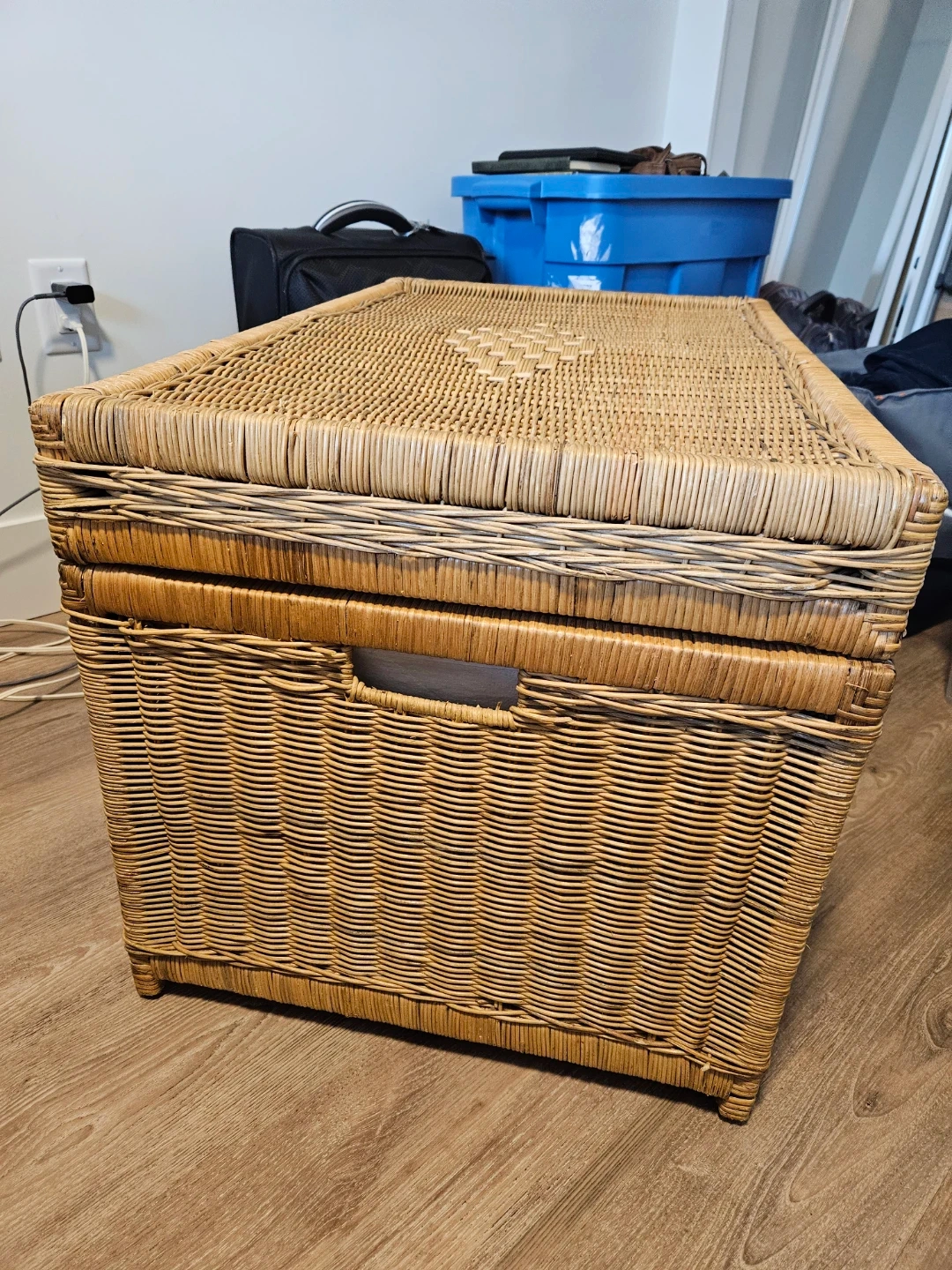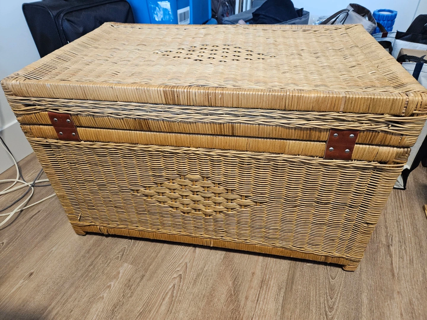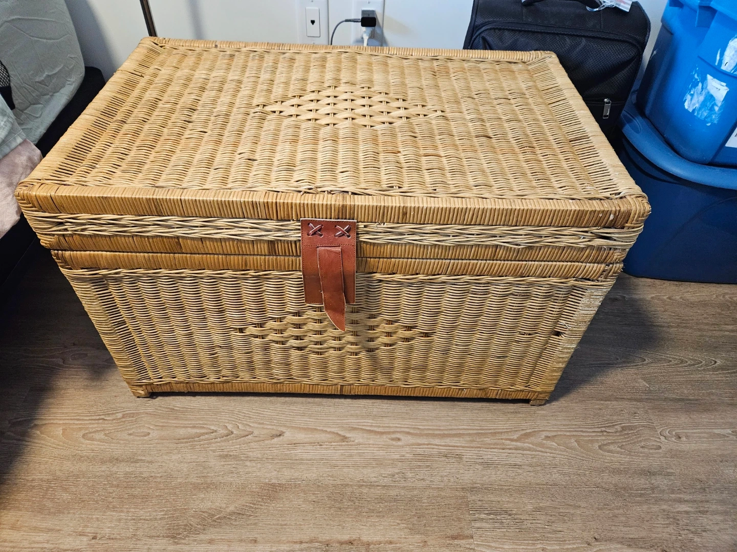 Wicker Storage Chest Trunk with Leather Strap