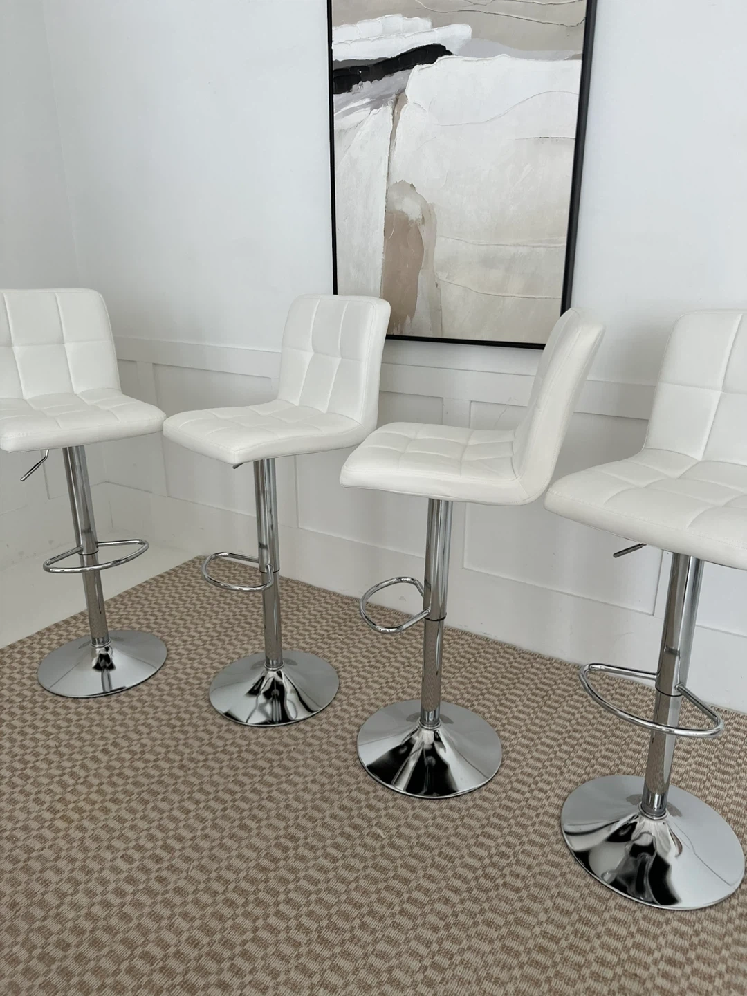 4 White Adjustable Bar Stools