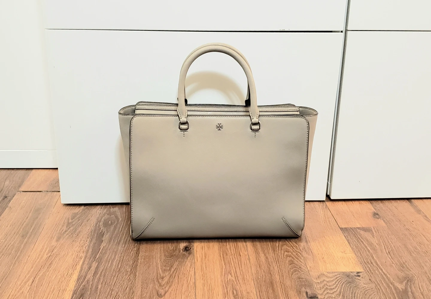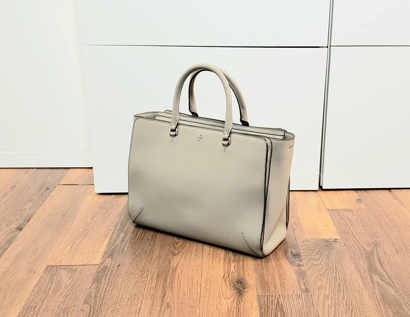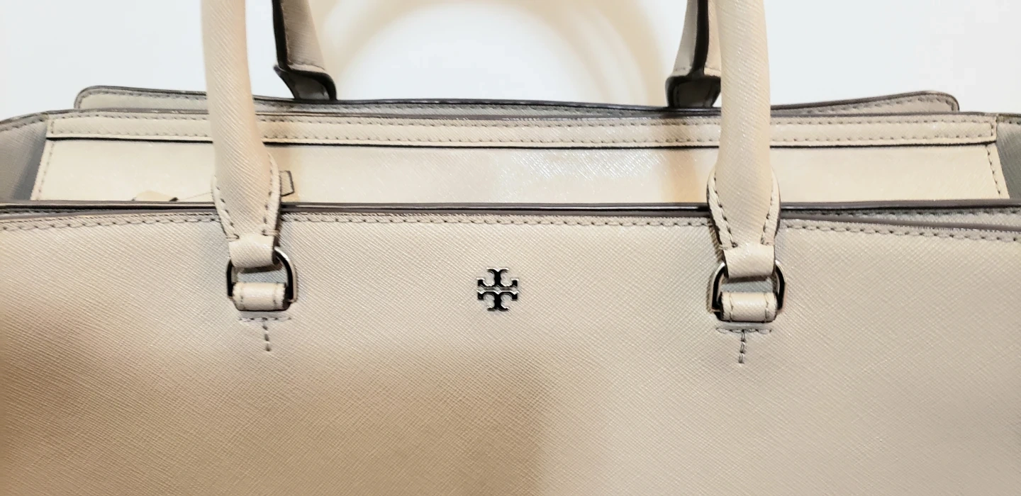 * Stylish Tory Burch grey satchel.