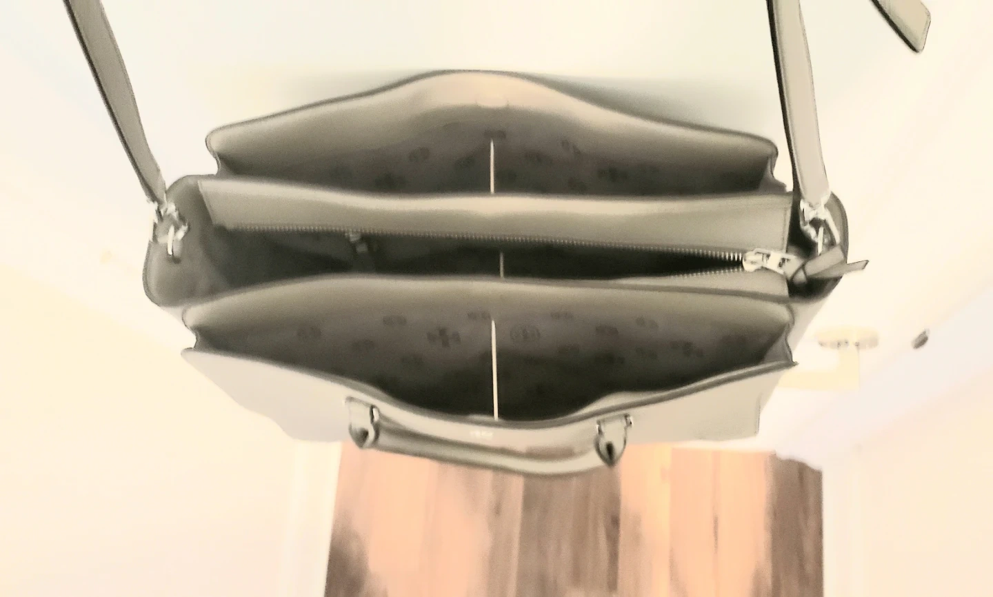 * Top handles and a shoulder strap.