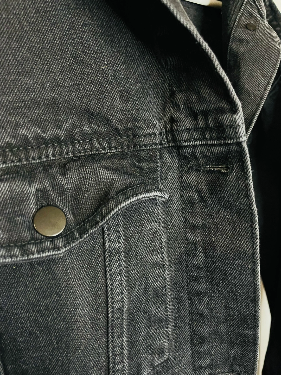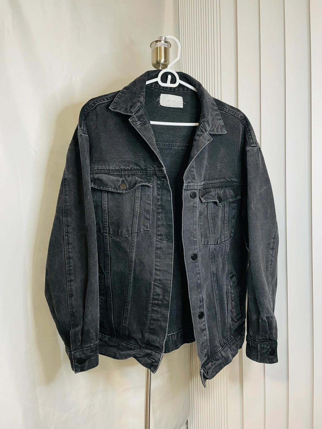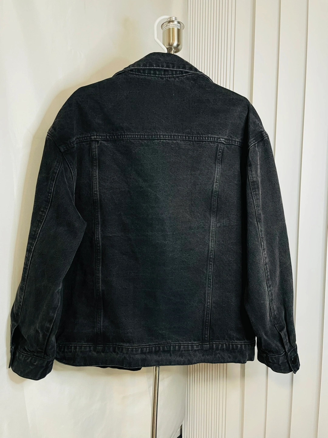 710Black denim jacket. Oversized fit. Button closure. Two front pockets. Long sleeves. ☺️☺️Find 50+ clothes in my listings ------------ 🌟Firm price 🌟Pick up at subway wellesley station 🌟Check my listings for more🎉