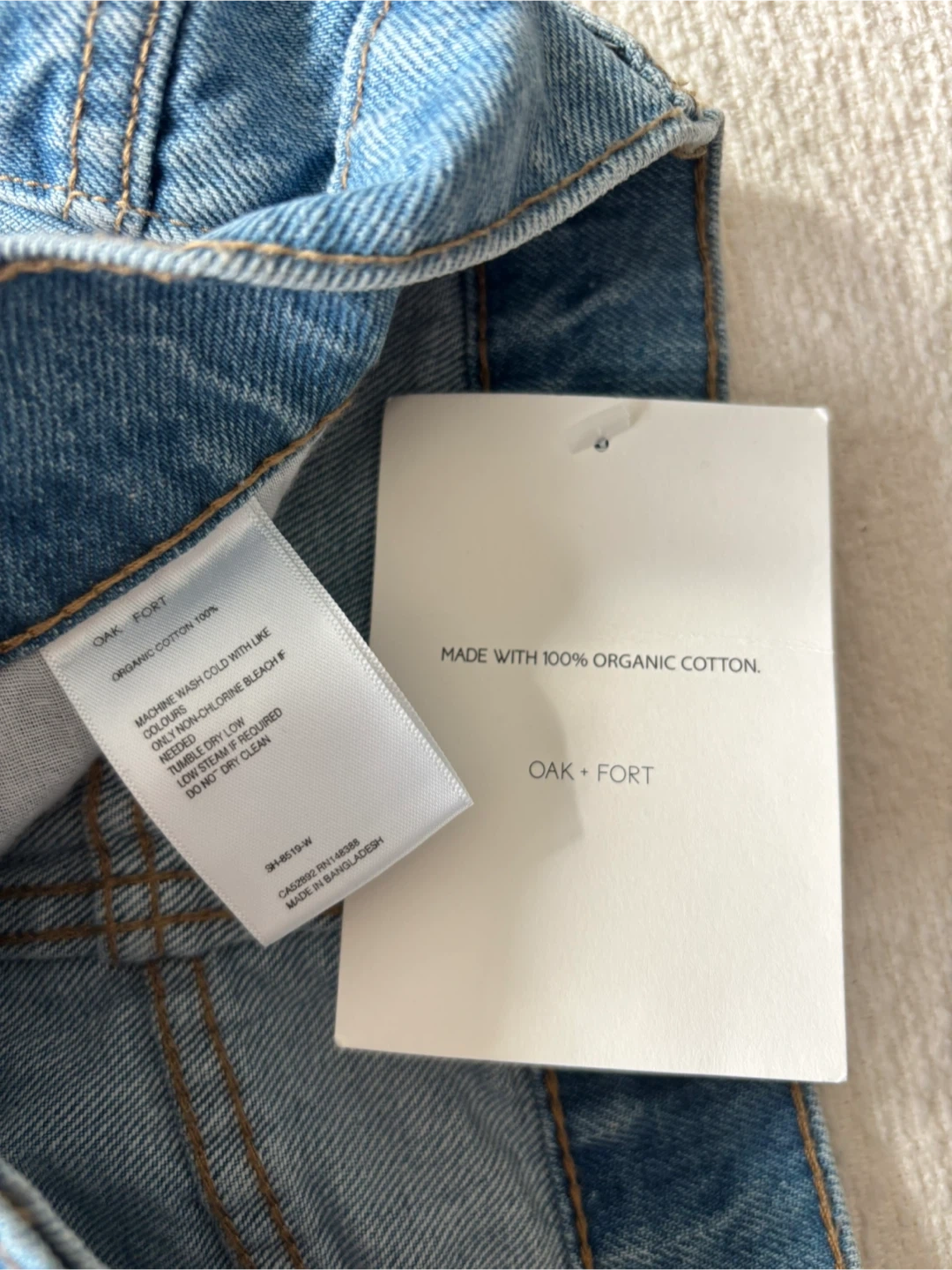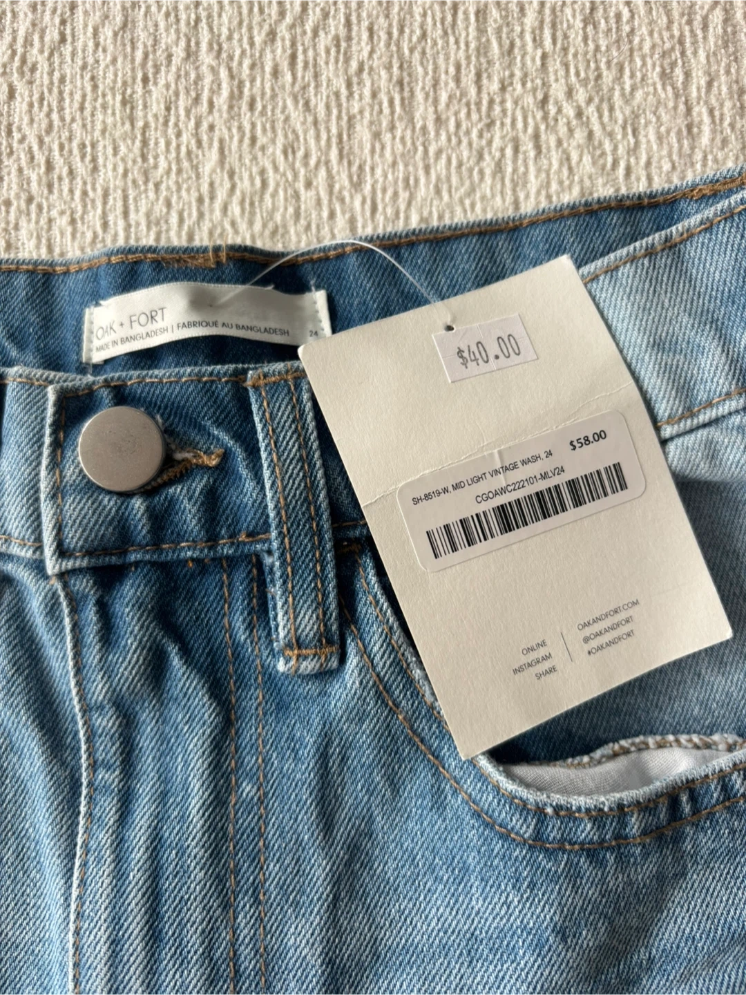 110Oak + Fort denim shorts in a size 24. Brand new with tag. They're a nice light wash and made with 100% organic cotton.