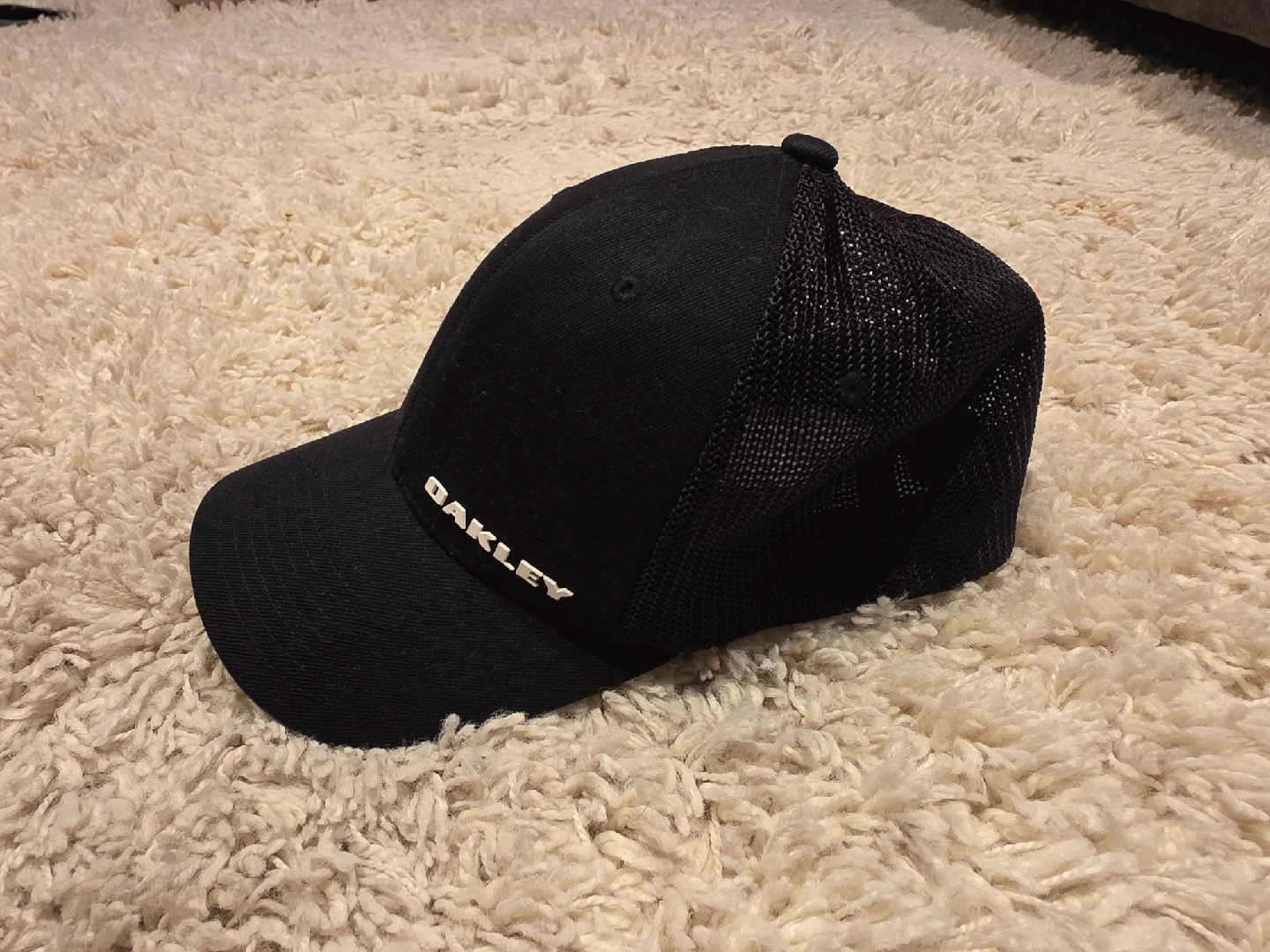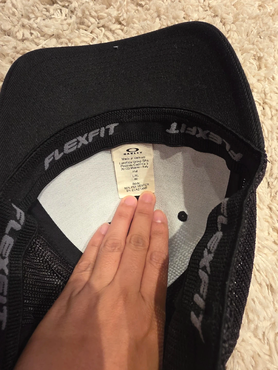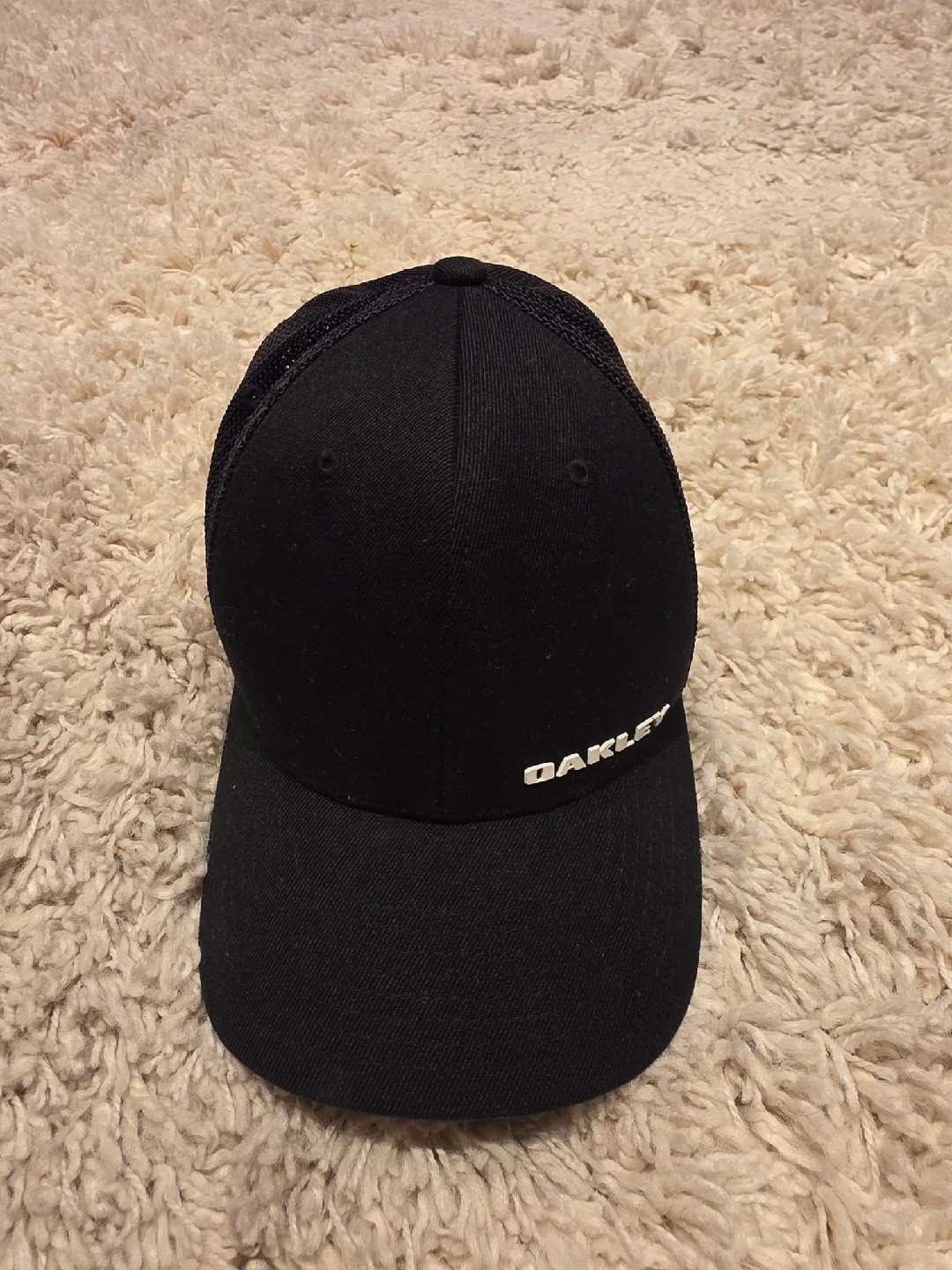 60Selling a black Oakley Flexfit hat in size L/XL. It's in great condition and ready for a new home! The material is 96% polyester and 4% elastane.