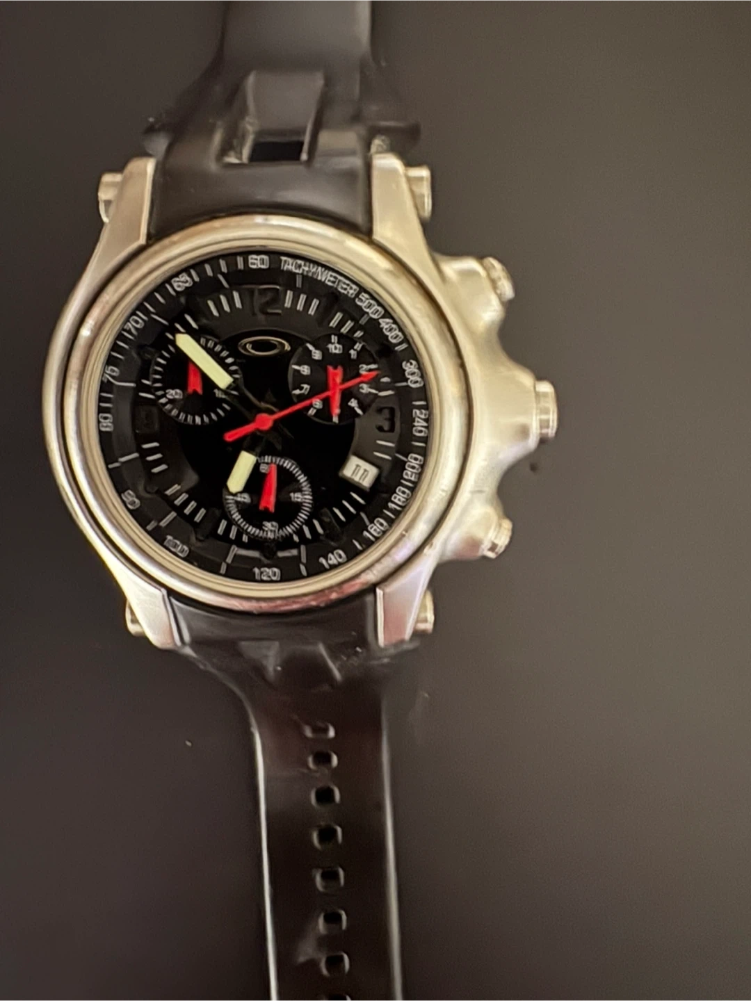 60Selling an Oakley watch with a black band. It's in good condition and ready for a new home!