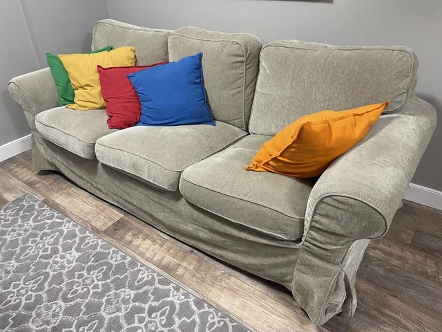 Add a pop of colour and comfort to your living space with these vibrant IKEA throw pillows! This set includes a variety of 5 colours and adds a cozy touch to any sofa, chair, or bed. Pillows are in used condition. Looking to jazz up your space without breaking the bank? These pillows are your answer! Don't miss out – if you're seeing this ad, they're still up for grabs! Cash accepted.