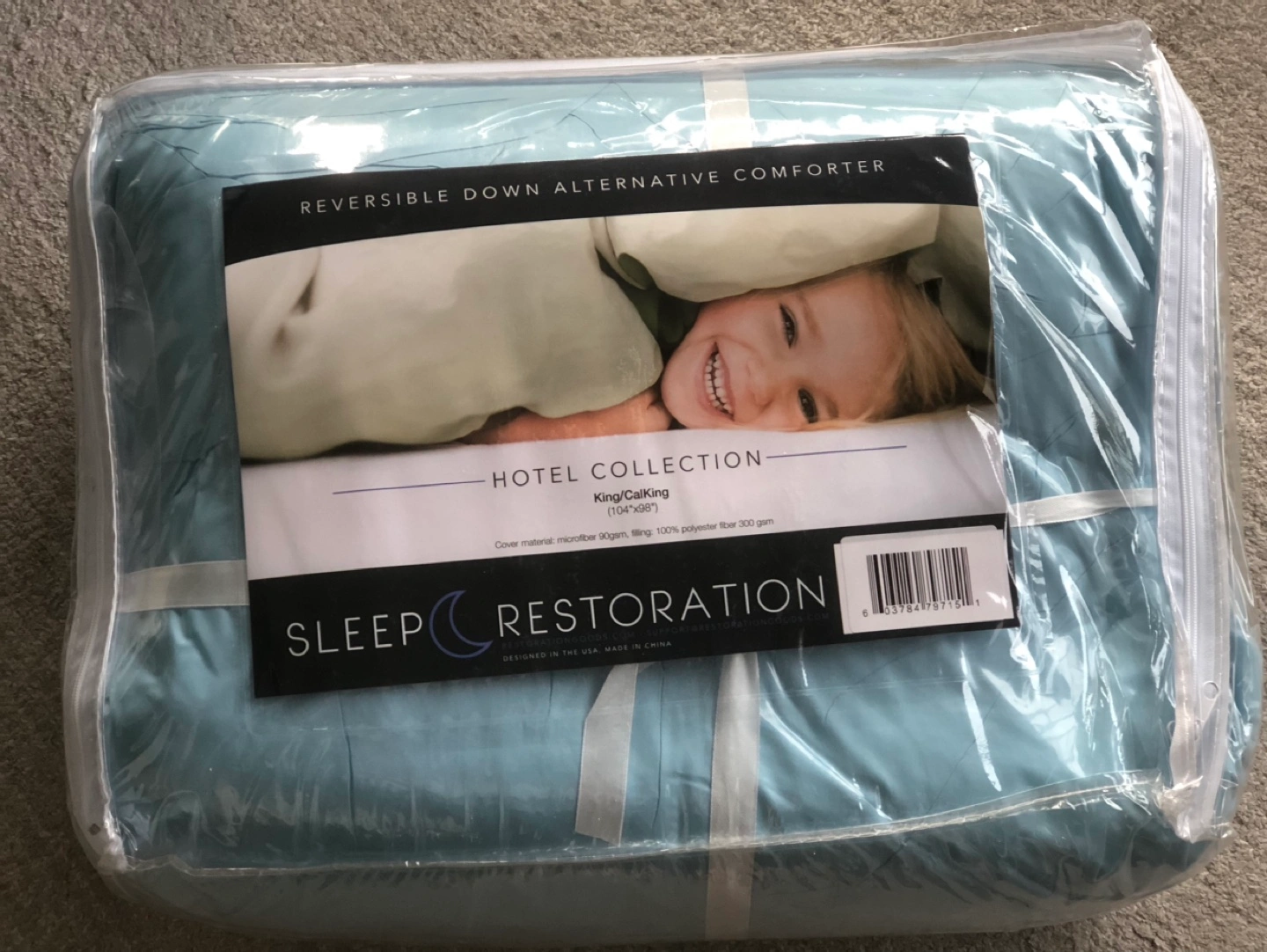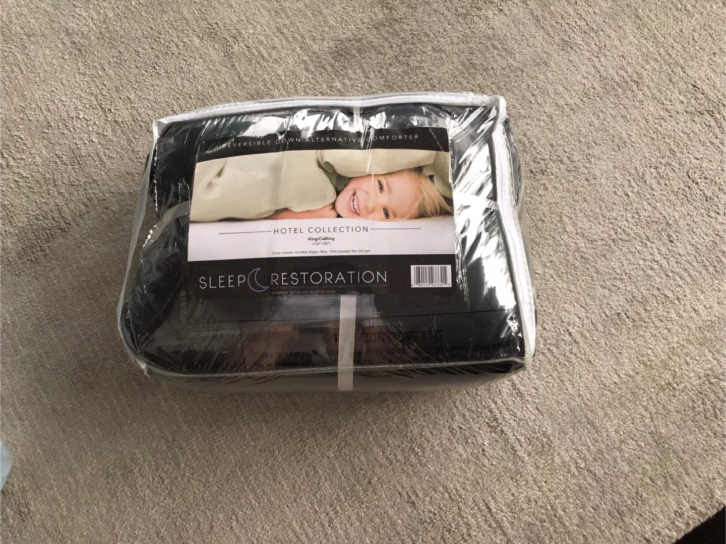 New, in packaging. Reversible comforter. King or California King size. Down alternative Hotel collection. Available in 2 colors, $95 each