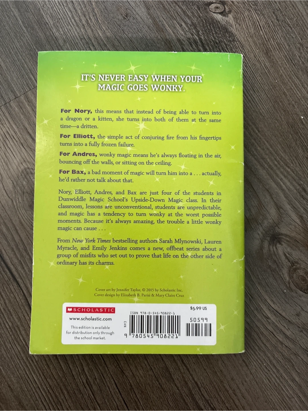 This is the "Upside-Down Magic" book by Sarah Mlynowski, Lauren Myracle, and Emily Jenkins. It's a Scholastic edition, perfect for young readers who enjoy fantasy and magic stories. The book follows the adventures of students at a magic school where things don't always go as planned.