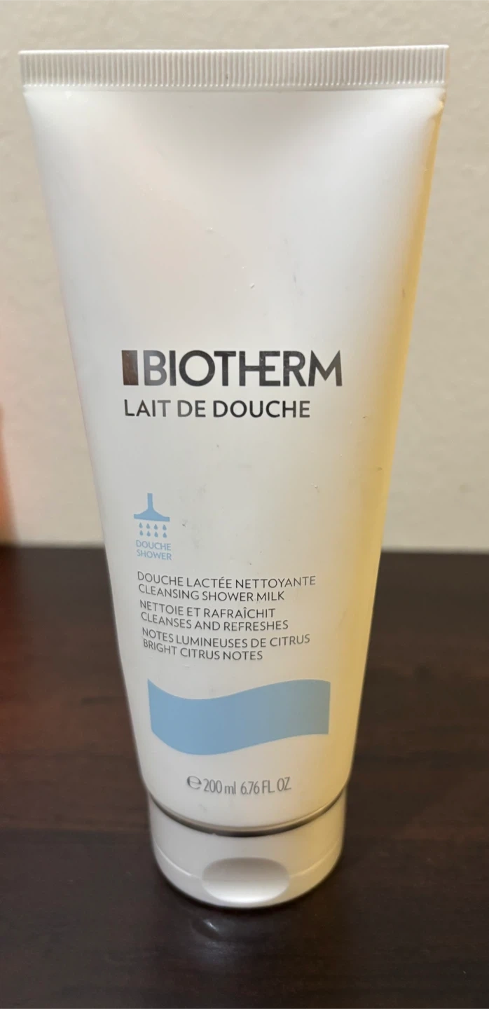Biotherm Lait de Douche is a cleansing shower milk that leaves skin feeling fresh. It's a creamy formula that works into a lather and then rinses clean. This shower milk has notes of citrus.