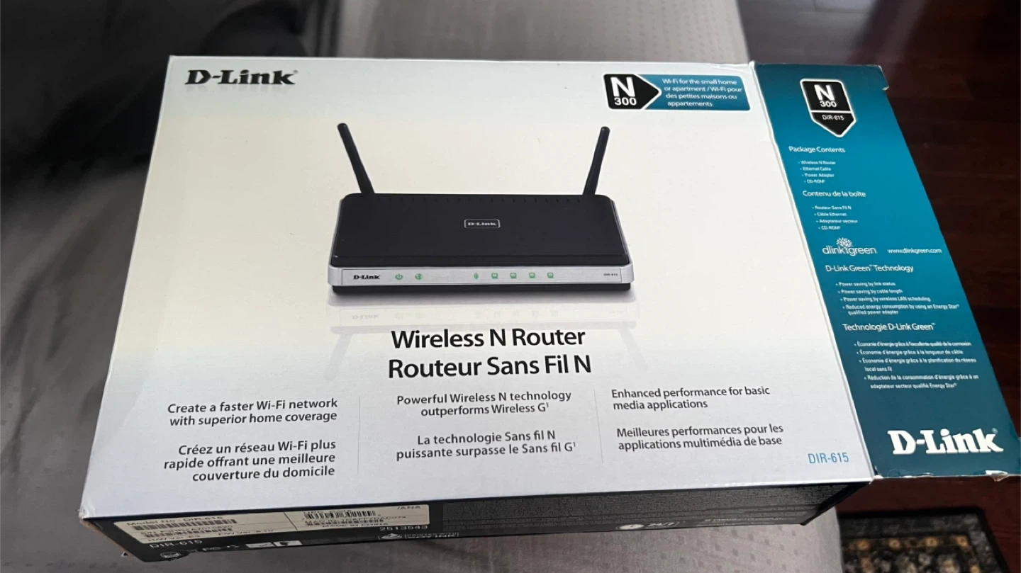 D-Link Wireless N Router, model DIR-615. This router offers powerful wireless N technology for a faster Wi-Fi network with superior home coverage. It includes the router, power adapter.