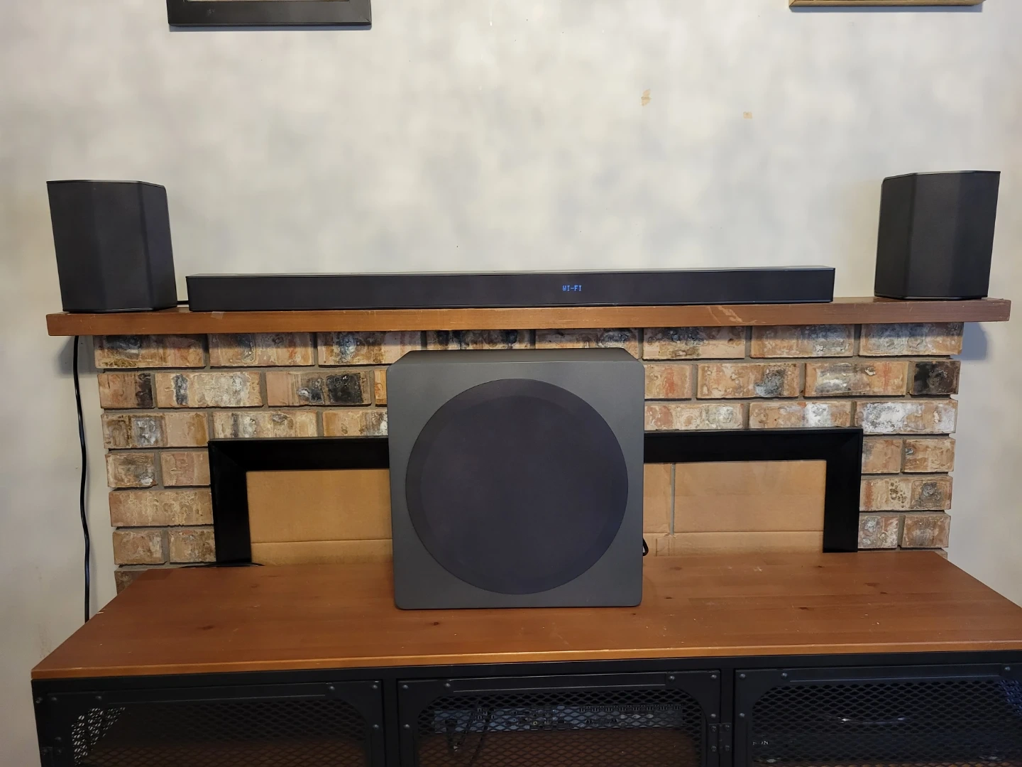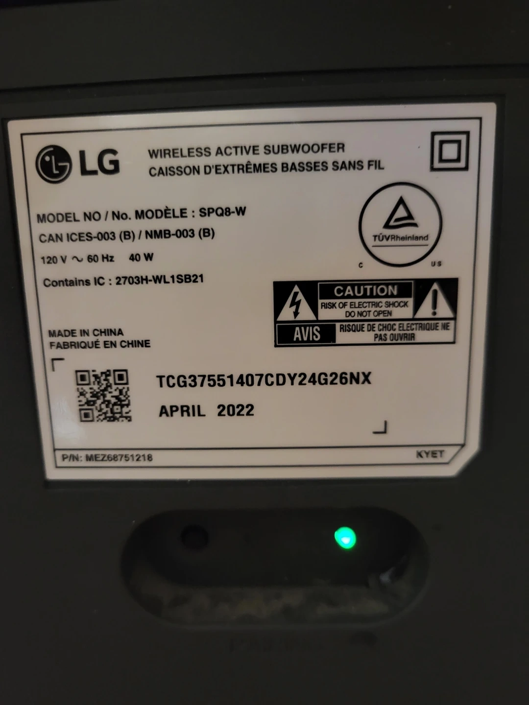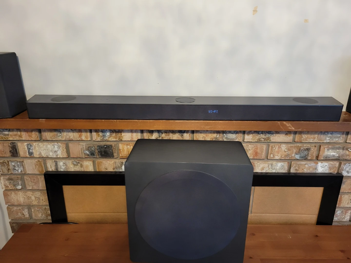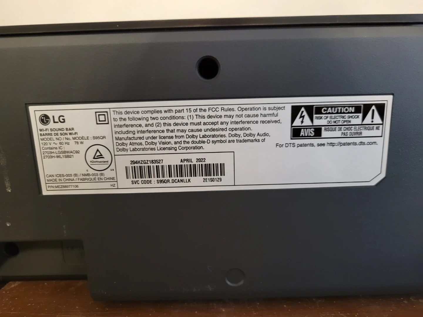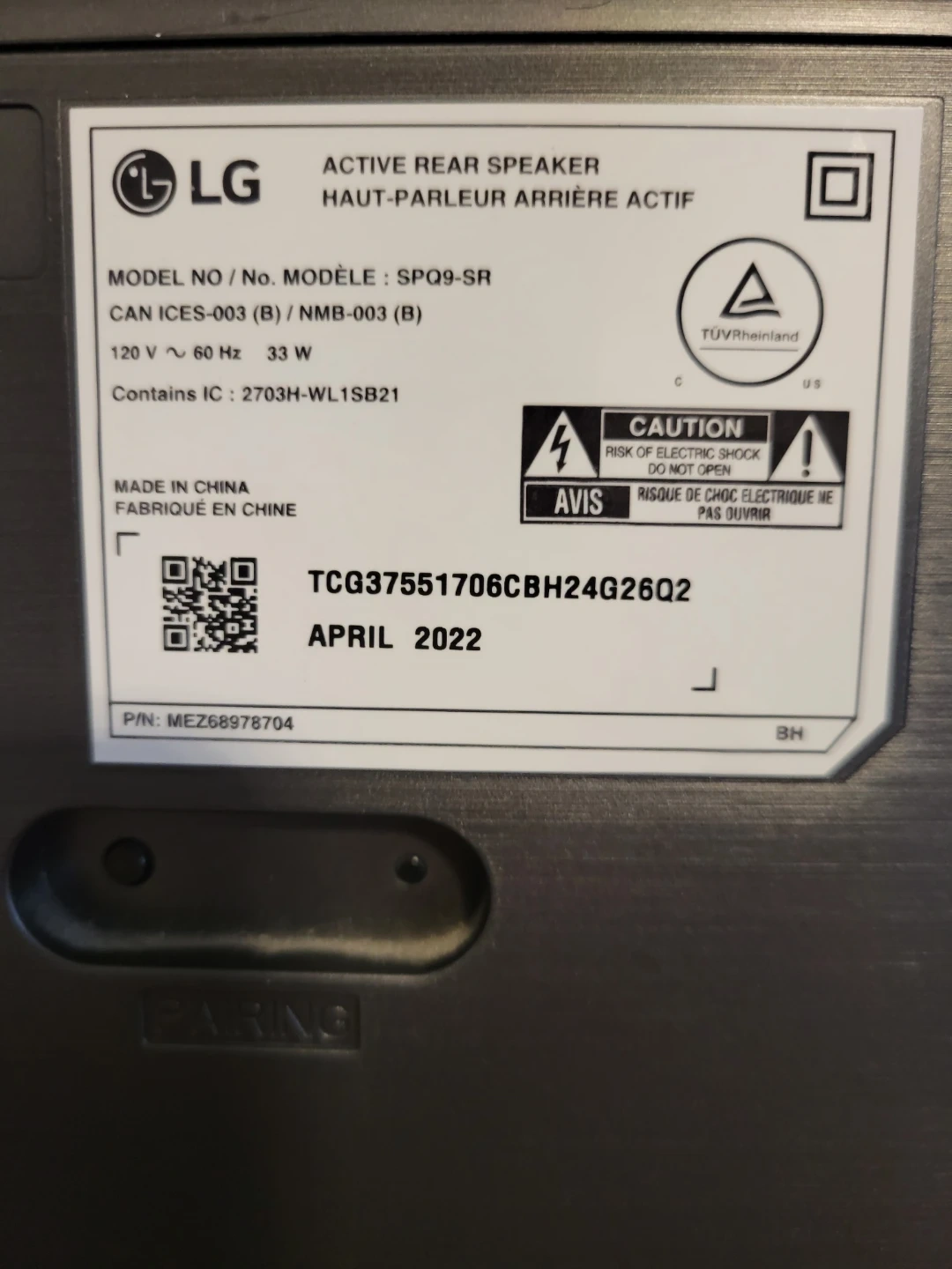 This is an LG SRQ95 with sound bar system with a wireless active subwoofer and two active rear speakers. Dolby Atmos with dynamic rich sound. 1 year old sounds amazing.