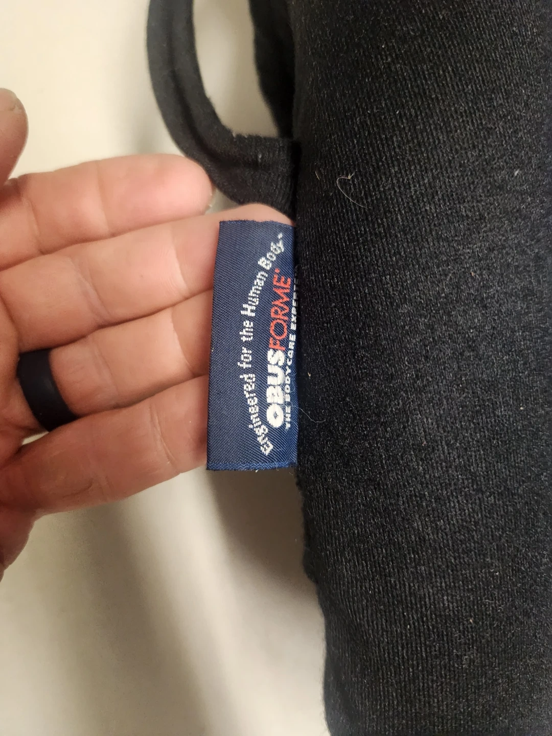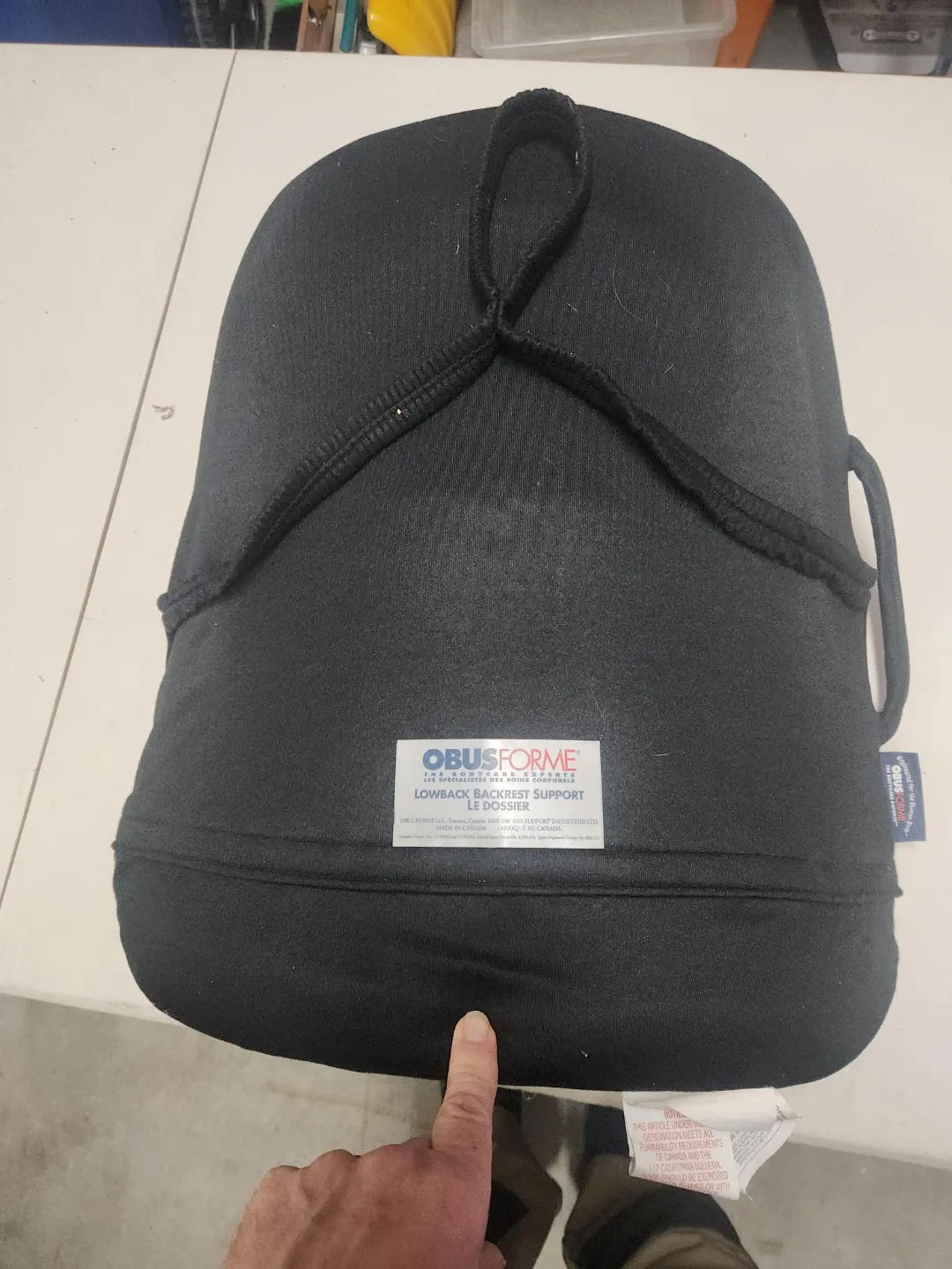 Obusforme lowback support for the human body. It's black and designed for lumbar support. This item helps provide comfort for your lower back.