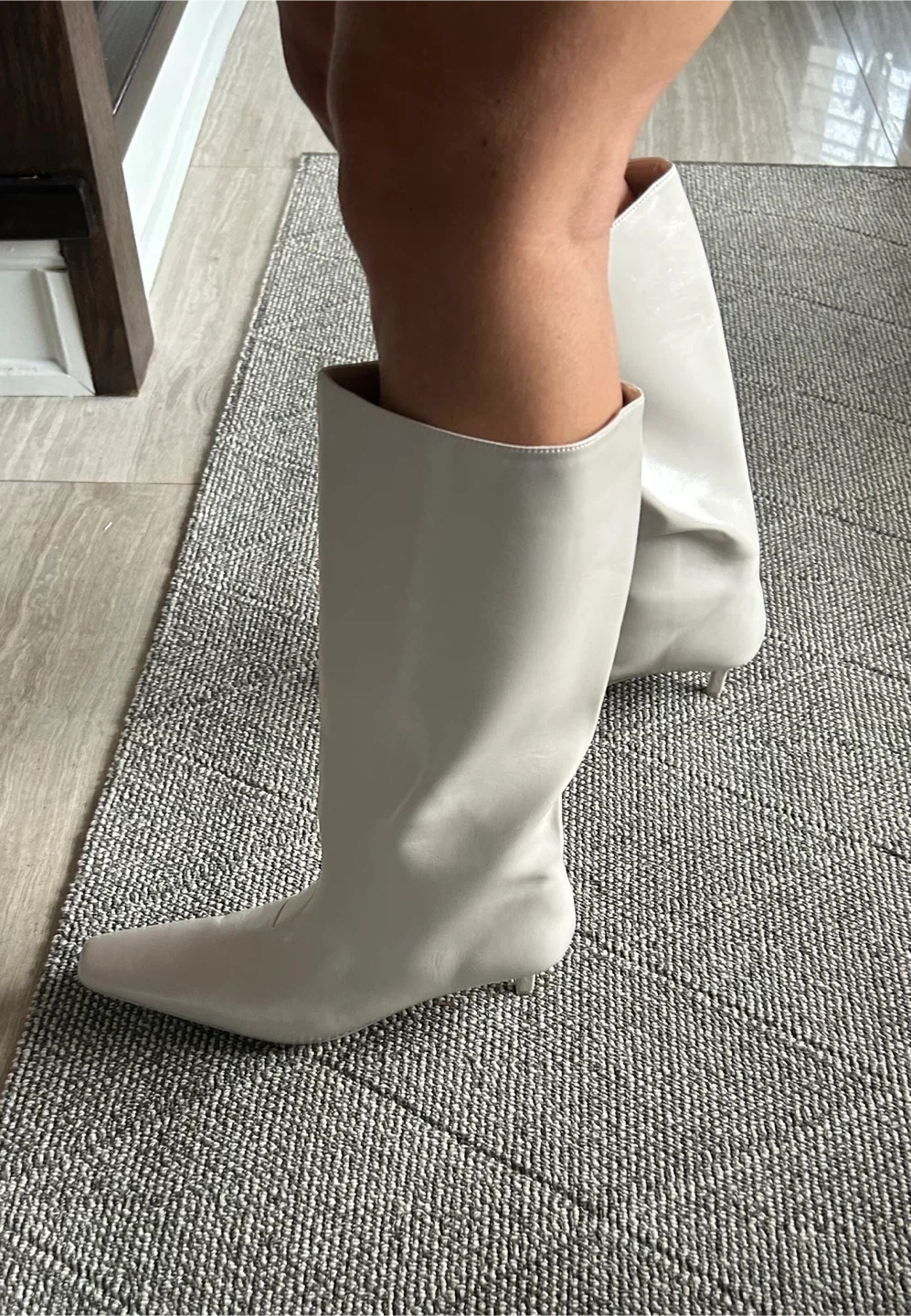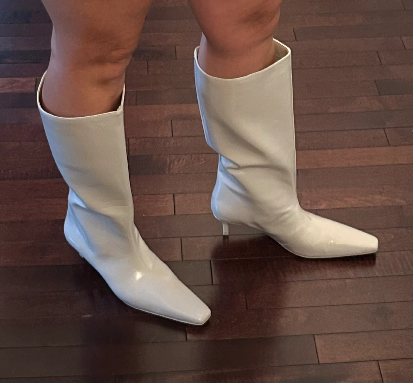 19These are a pair of off-white, knee-high heel boots. They are in great condition and ready for a new home!