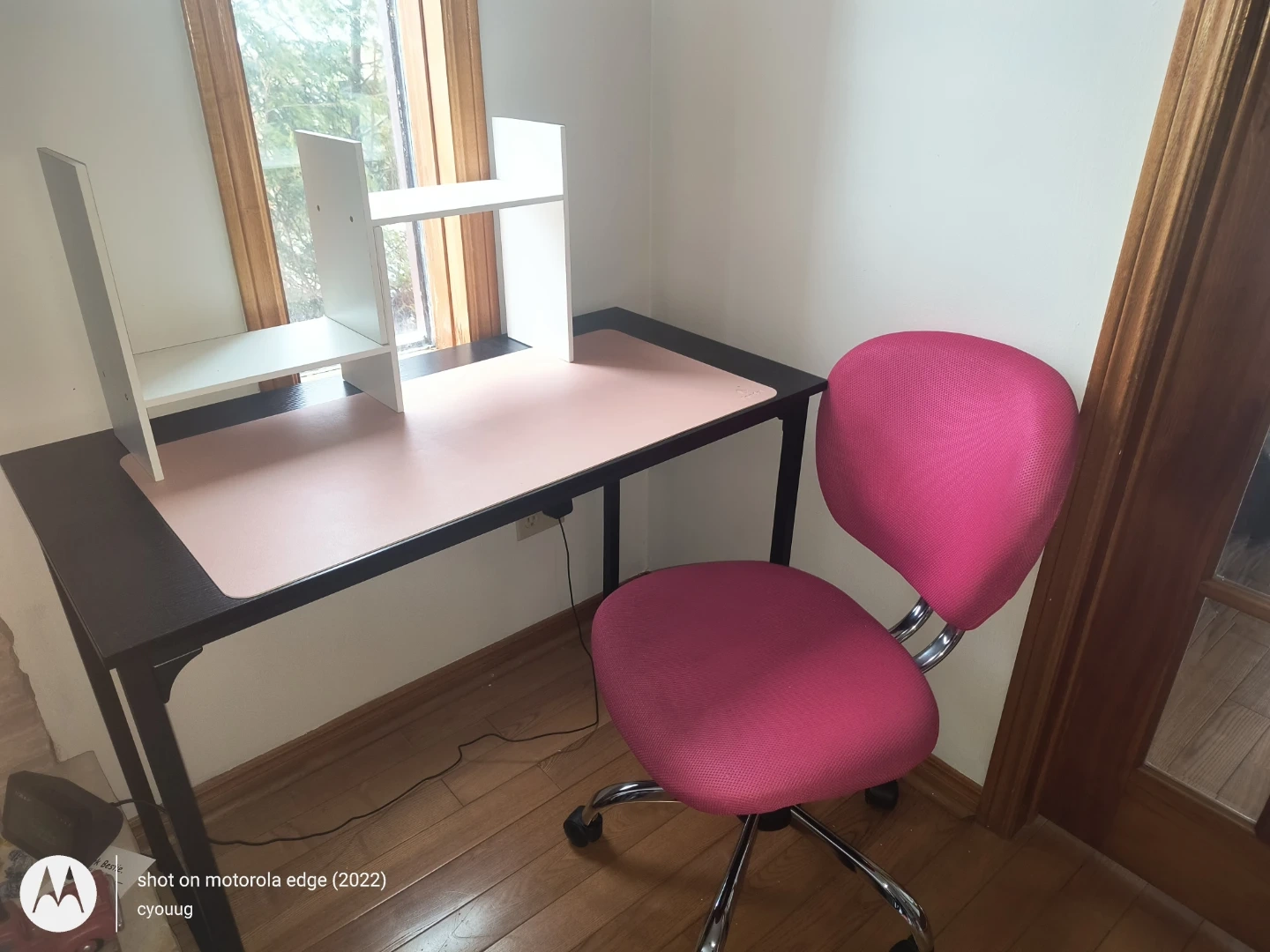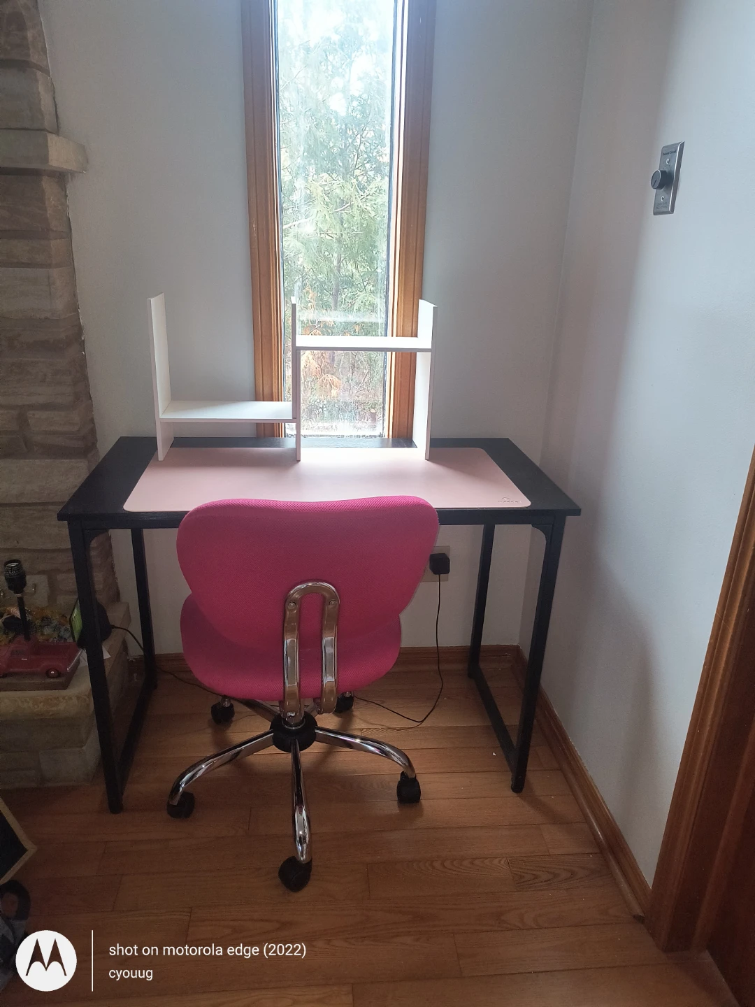 Desk, Pink computer chair, Pink Desk Mat and organizer stand