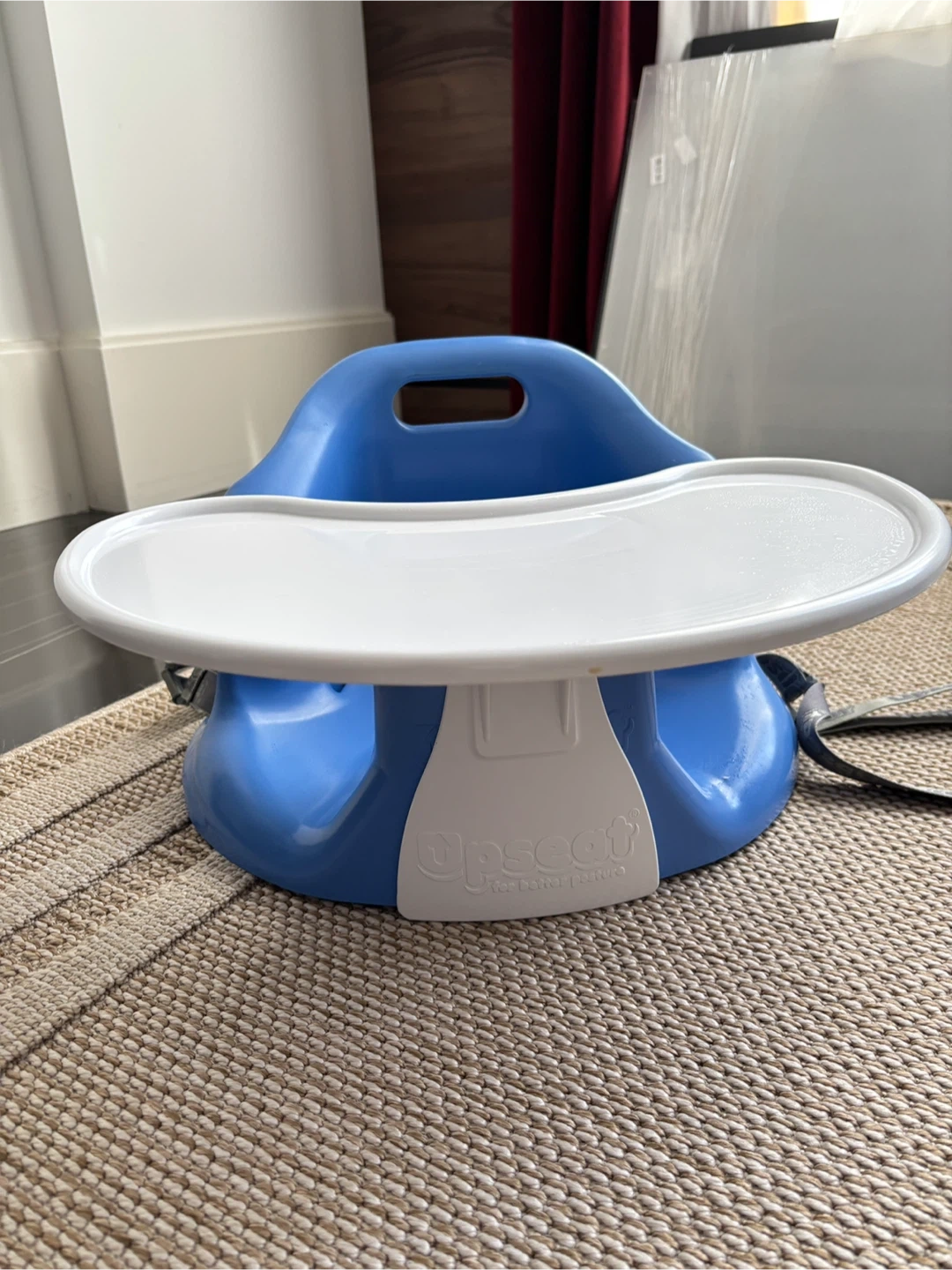 Selling a blue Upseat floor and booster seat! It's in great condition. It's perfect for helping your little one sit up and join in on family time. Super convenient to take with you when you dine out.