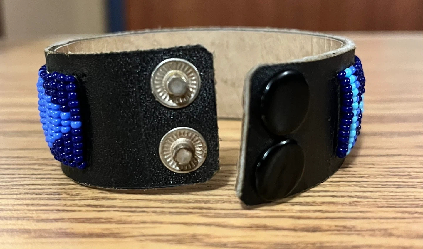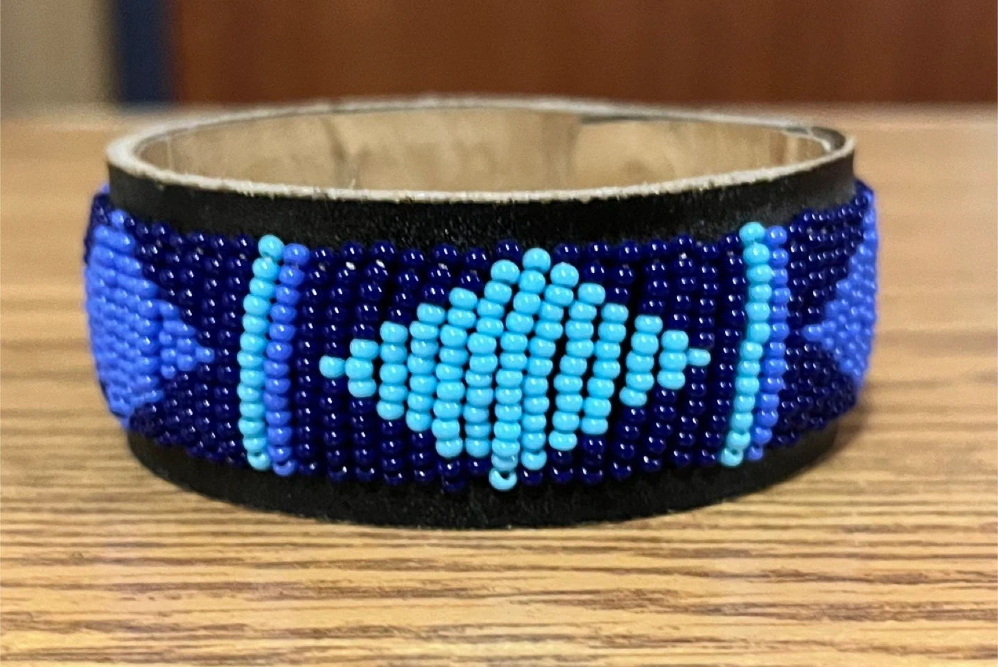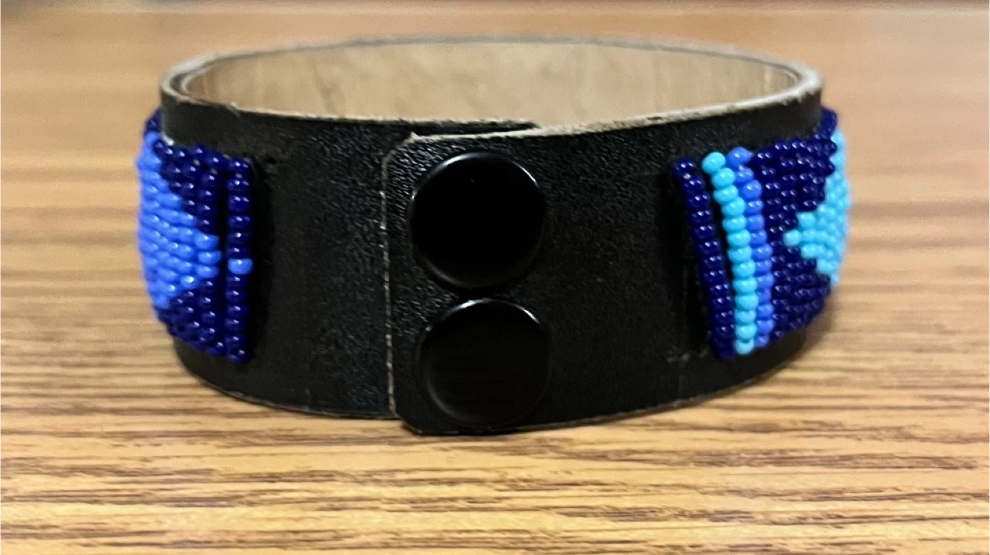 Add a pop of colour to your wrist with this eye-catching, used beaded bracelet, showcasing a unique blue geometric design. The bracelet is previously owned.