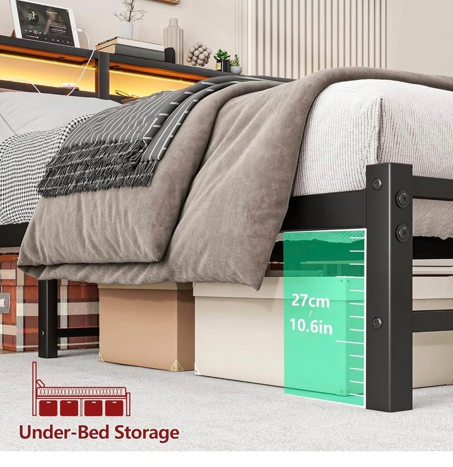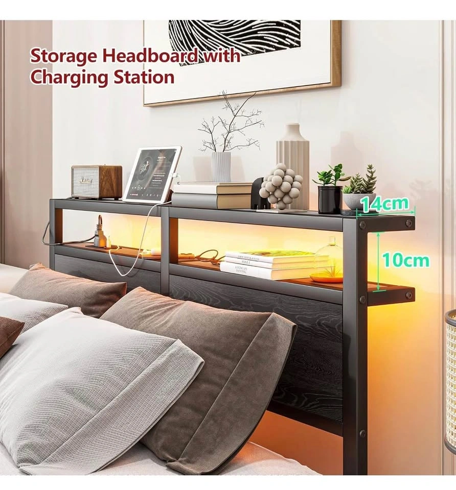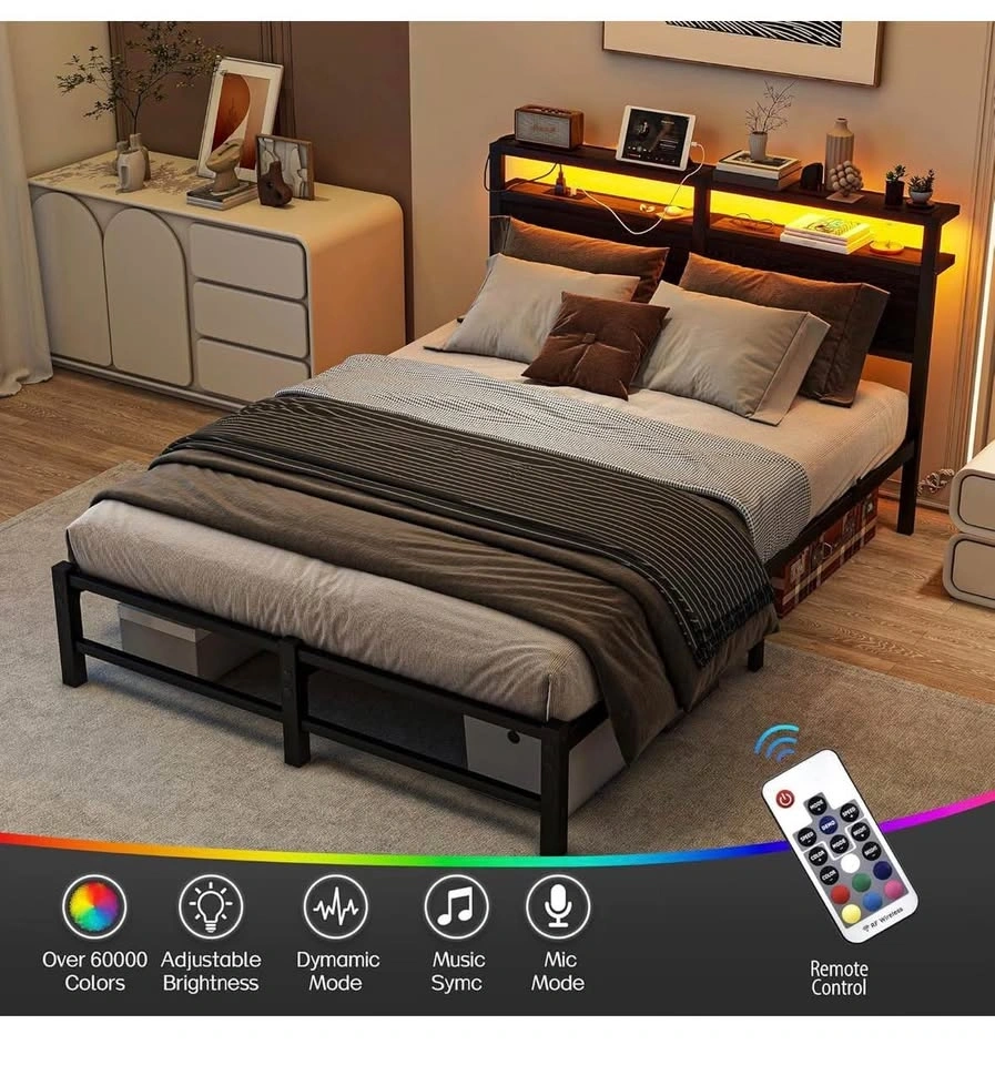 Queen Bed Frame w/ LED Headboard & Charging Ports