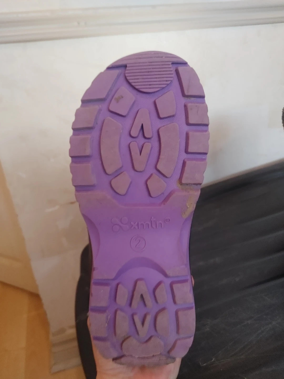Kamik winter boots for girls in purple and black. These boots have a toggle closure system and fuzzy trim. They're designed for cold weather. Perfect for keeping little feet warm and dry on snowy days! Only worn twice! Size 2