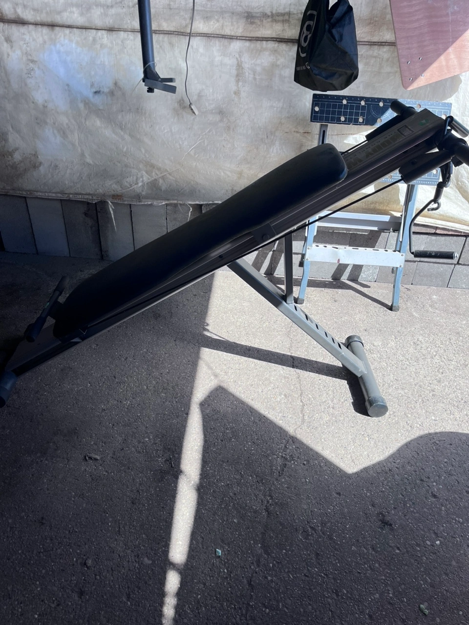 This gravity work out bench works arms, legs, abs, back, or all of the above as a gravity rowing machine. Lower or raise it higher for resistance levels.. 8 different settings, to move your own body weight.