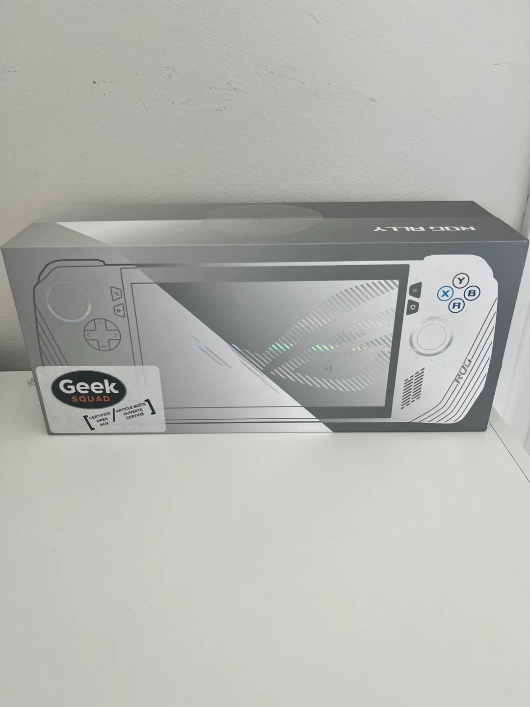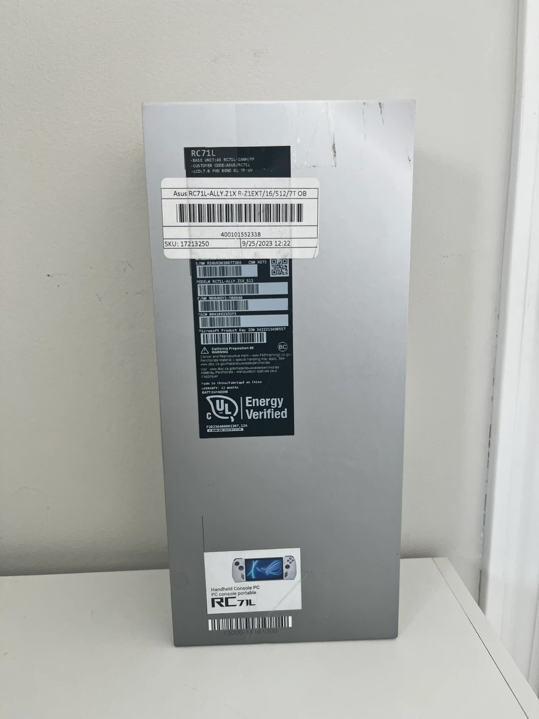 This is an ASUS ROG Ally RC71L handheld gaming console. It's a portable PC gaming device. It comes with the original box. The device is designed for gaming on the go!
